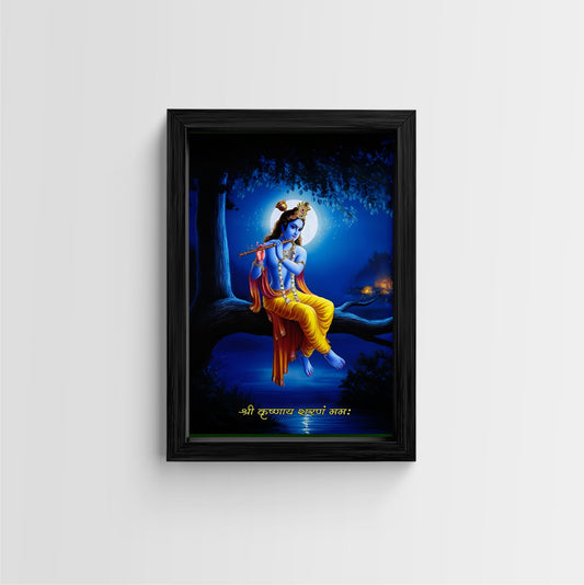 Elevate your home decor with this exquisite framed print of Lord Krishna playing his flute....