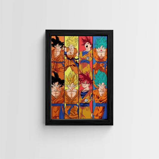 Celebrate the legendary power-ups of Son Goku with this stunning wall art! This vibrant piece...