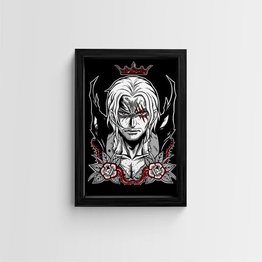 Elevate your space with this captivating framed art print of Shanks, the legendary Red-Haired Pirate...