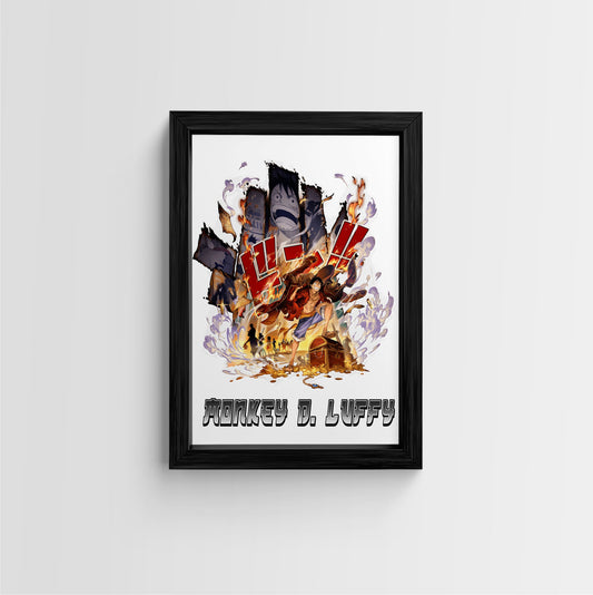 This stunning framed art print showcases the iconic Monkey D. Luffy from One Piece, transformed...
