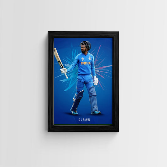 Elevate your space with this striking framed art print featuring KL Rahul, a renowned figure...