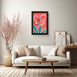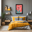 This exquisite piece of art, encased in a sleek black frame, features abstract floral designs blossoming against a vibrant coral backdrop. The playful dance of teal and coral hues breathes life into any space, making it a perfect addition to infuse warmth and charm into your living room or office space. It’s not just wall art; it’s a conversation starter that blends seamlessly with both contemporary and traditional decor.