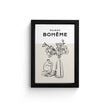 Indulge in the serene beauty of Bohème Elegance, a premium framed art print that effortlessly marries modern aesthetics with classic charm- This exquisite piece features a delicate, hand-drawn illustration of blooming flowers in a vase, accompanied by an elegant cat, encapsulating a moment of peaceful reflection- Set against the backdrop of the bold MAISON BOHÈME inscription, this wall art is a testament to refined taste and sophistication- Perfect for adding a touch of elegance to any space, it’s printed on high-quality canvas and encased in a sleek black frame- Whether you’re looking to elevate your living room or office décor, Bohème Elegance promises to be a conversation starter-