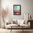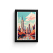 This canvas painting art beautifully merges the bustling cityscape with serene nature. The wall painting with frames features iconic skyscrapers, set against a backdrop of a tranquil sky, surrounded by lush trees. It’s a perfect piece of wall art for those who love the energy of the city but also crave moments of peace and natural beauty.
