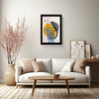 Step into the serene beauty of nature with our “Tropical Elegance” framed art print. This exquisite piece, perfect for any wall art enthusiast, captures a meticulously detailed chameleon, its scales a testament to nature’s artistry, poised gracefully amidst lush foliage. The canvas painting is set against an abstract backdrop of warm golden hues and cool blues, evoking the gentle sway of tropical leaves under the sunlit sky. Every stroke and color blend seamlessly, making it a masterpiece that adds a touch of sophistication and natural charm to any space.
