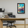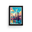This canvas painting art, a blend of modern cityscape and natural beauty, is a perfect piece for those looking to add a touch of sophistication to their space. The artwork features a vibrant city with towering buildings, a majestic bridge, and serene waters, all under the watchful eye of the colorful sky. It’s not just wall art; it’s a view into a world where nature and urban life coexist in harmony. Ideal for adorning your living room or office walls.