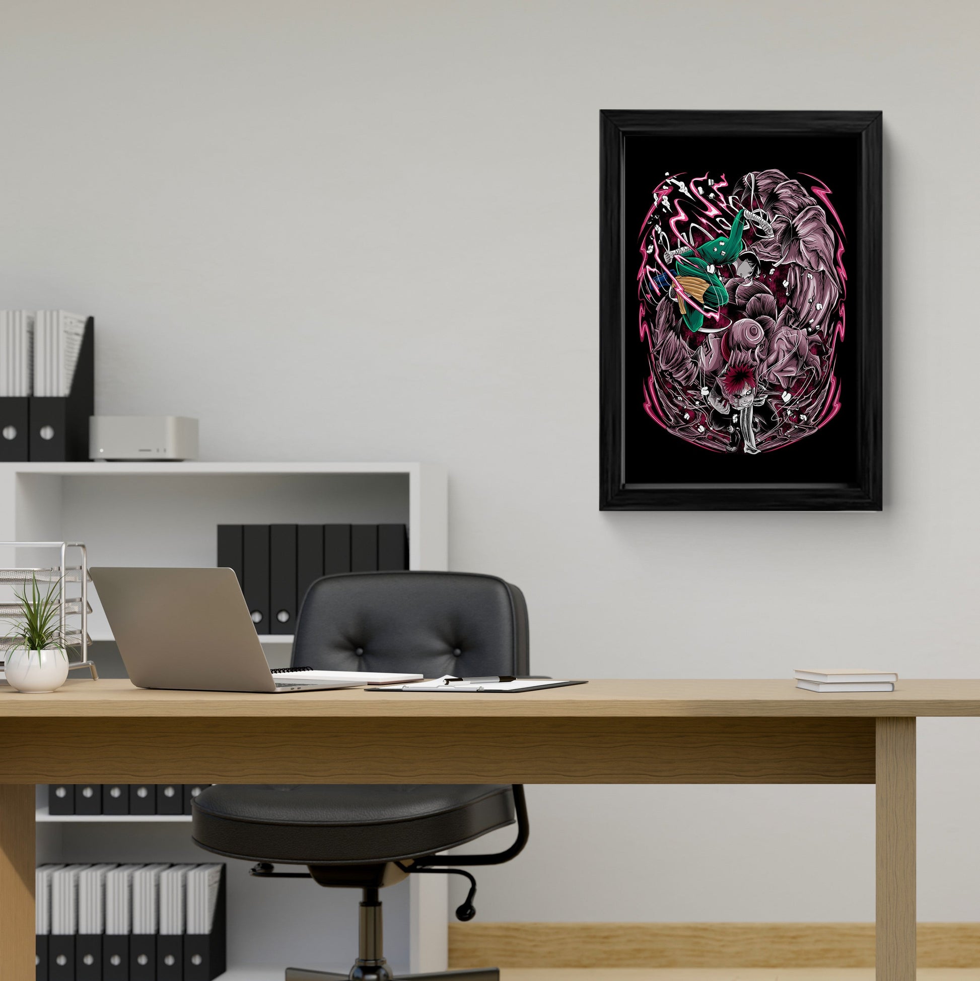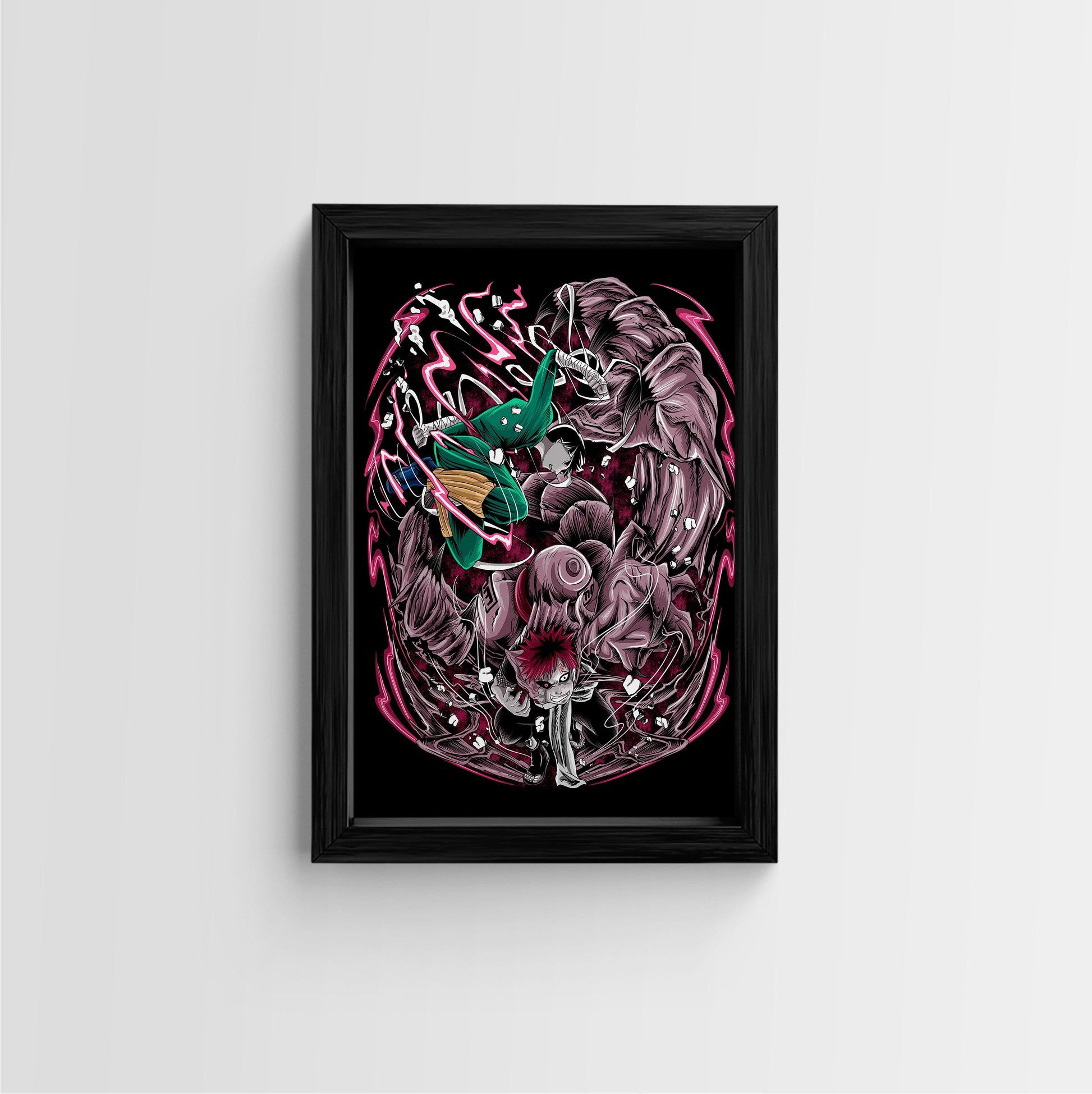 This stunning framed art print captures the intense battle between Kyojuro Rengoku and Akaza from the popular anime series, Demon Slayer: Kimetsu no Yaiba. The vibrant colors and dynamic composition showcase the power and determination of these two formidable opponents. Perfect for any fan of anime or Japanese art, this canvas wall art is a must-have for your home.
