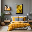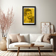 Elevate your space with this striking framed art print, featuring an abstract representation of a figure in a golden hue. The bold contrast and geometric shapes make this canvas wall art a captivating addition to any room. Perfect for those who appreciate modern canvas paintings with a touch of elegance.