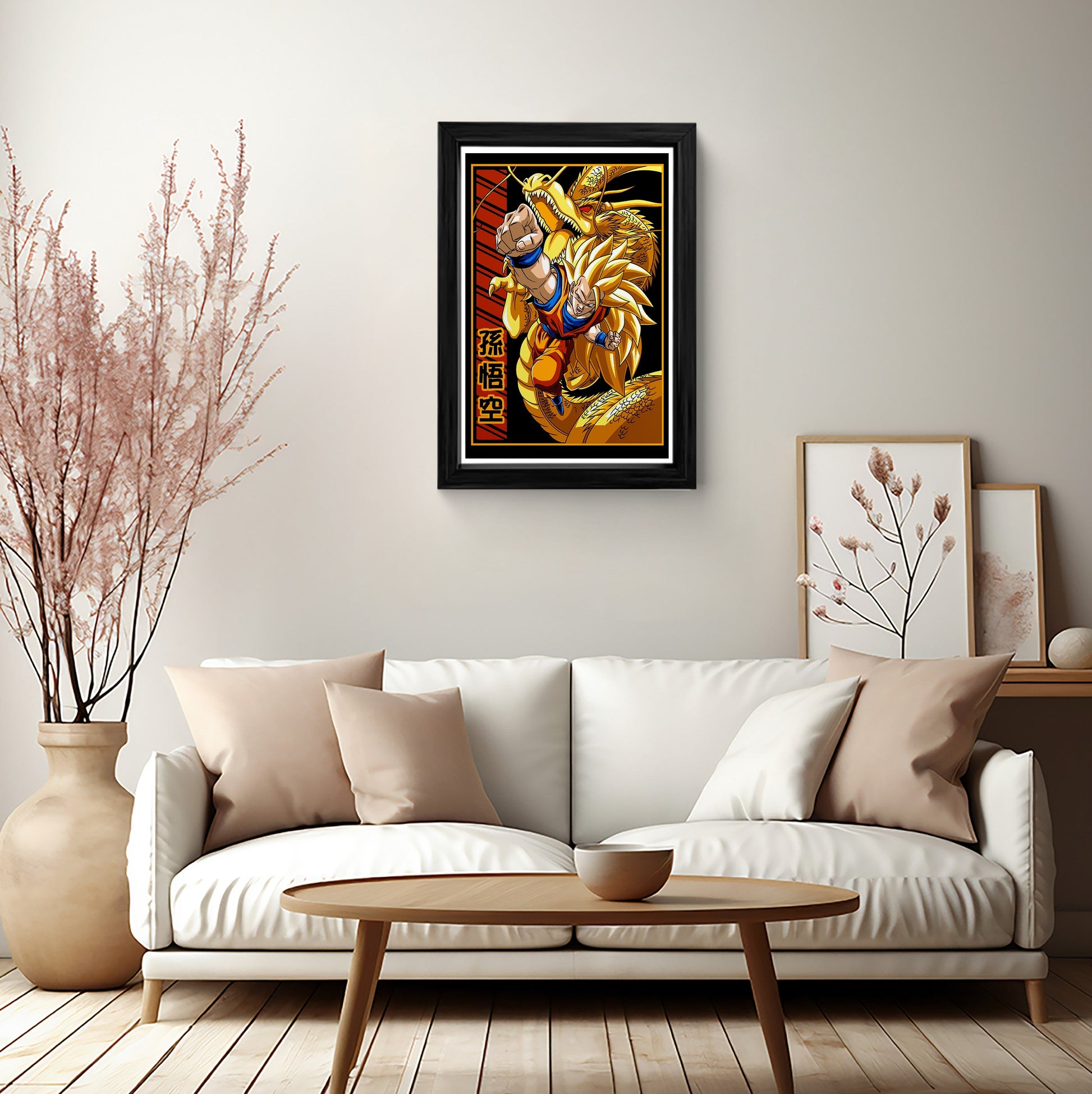Perfect for your living room, bedroom, or home office, this framed art print is a high-quality piece that will add a touch of nostalgia and style to any space. Display it on its own or as part of a larger Dragon Ball Z collection.