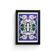 Adorn your walls with our elegant floral art print, encased in a stylish black frame- The symmetrical design, featuring blooming flowers and lush green leaves against a serene blue background, adds a touch of sophistication and natural beauty to any room- Perfect for art lovers and nature enthusiasts alike-