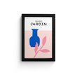 Step into the serene beauty of Galerie Jardin, a premium framed art print that marries modern design aesthetics with a touch of nature- This exquisite piece features a bold blue vase contrasted against a soft pink backdrop, adorned with a delicate pink leaf - an epitome of simplistic elegance- Perfect for adding a dash of color and sophistication to your space, this canvas painting seamlessly blends with contemporary home décor styles- Elevate your living room or office aesthetics with this captivating wall art, promising not just visual appeal but conversation starters-