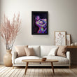 This mesmerizing piece, encased in a sleek black frame, brings a harmonious blend of vibrant hues to life, portraying two figures intertwined in a dance of passion and color. Perfect for adding a touch of sophistication and warmth to your living space.