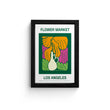 Elevate your space with this vibrant Flower Market Los Angeles framed art print- A blend of modern design and classic charm, this piece captures the essence of the iconic LA flower market- The bold colors and abstract floral design make it a perfect addition for those looking to add a touch of elegance and contemporary flair to their decor- Ideal for both home and office spaces-