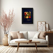 Unveiling Flower Power Elegance, a captivating framed art print that embodies the serene beauty of nature- This exquisite piece, set against a rich navy backdrop, features an elegant display of blooming flowers and lush foliage crafted with meticulous detail- The harmonious blend of warm tones breathes life into every petal and leaf, making it a timeless addition to any space- Ideal for those seeking wall art that marries modern design aesthetics with classic natural beauty, this canvas painting is a testament to artistry and elegance-