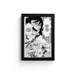 This monochrome anime illustration portrays an intense confrontation between two characters. The angry protagonist, shouting with fury, dominates the foreground. Meanwhile, the second character, affected by an attack named “FREEZING CLOUDS,” appears in the bottom right corner. Dramatic lines emphasize motion and intensity in the background. Add character and intensity to your space with this beautiful framed or canvas manga artwork.