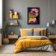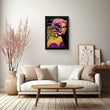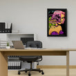 This vibrant canvas painting art piece, titled “Galactic Toast,” is a mesmerizing blend of bold colors and intricate details. A figure is depicted enjoying a cosmic beverage, surrounded by the enigmatic aura of space. This wall art is perfect for adding a touch of mystery and allure to any room. It’s available as both framed art print and canvas wall art to suit your aesthetic preferences.