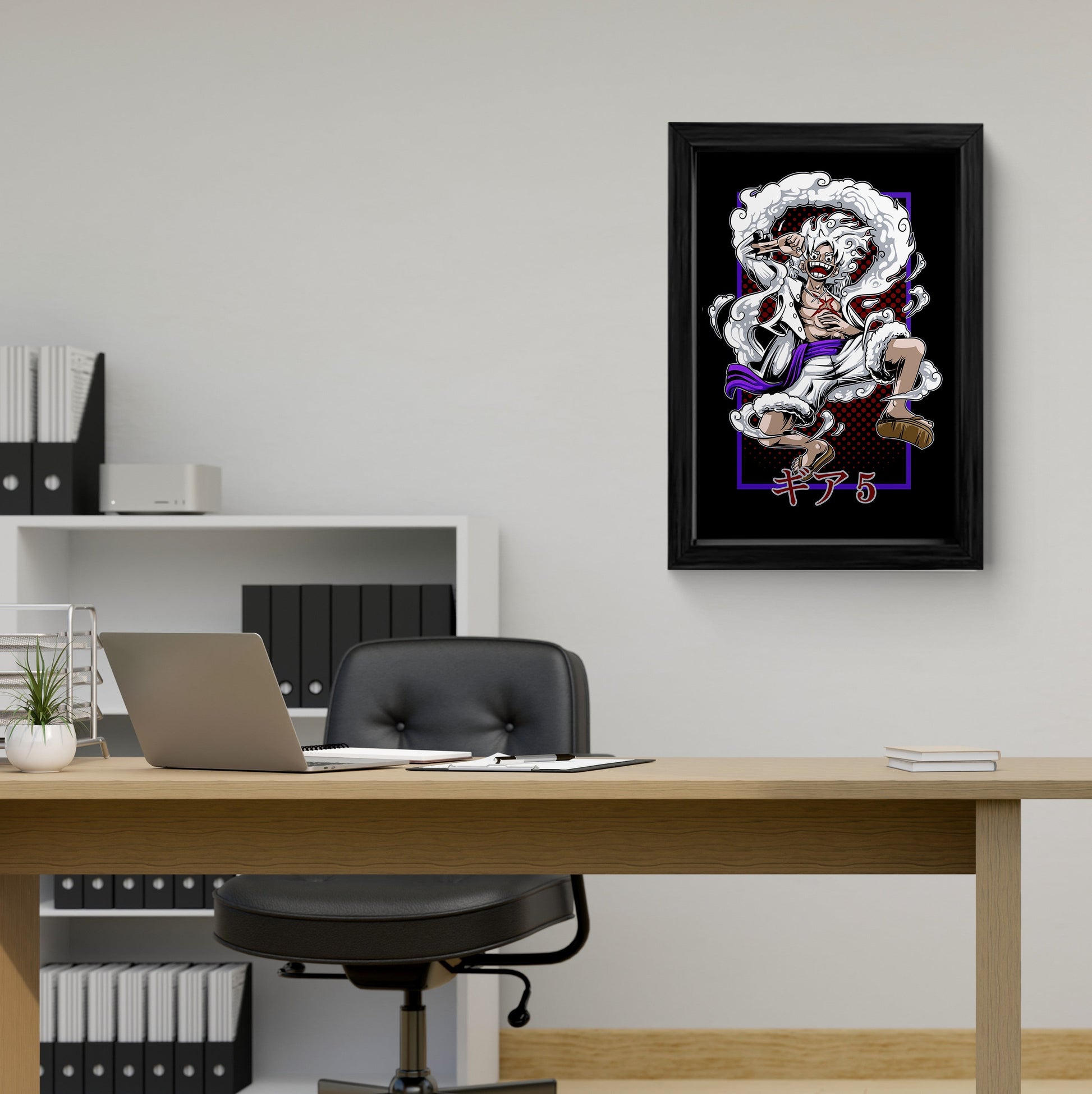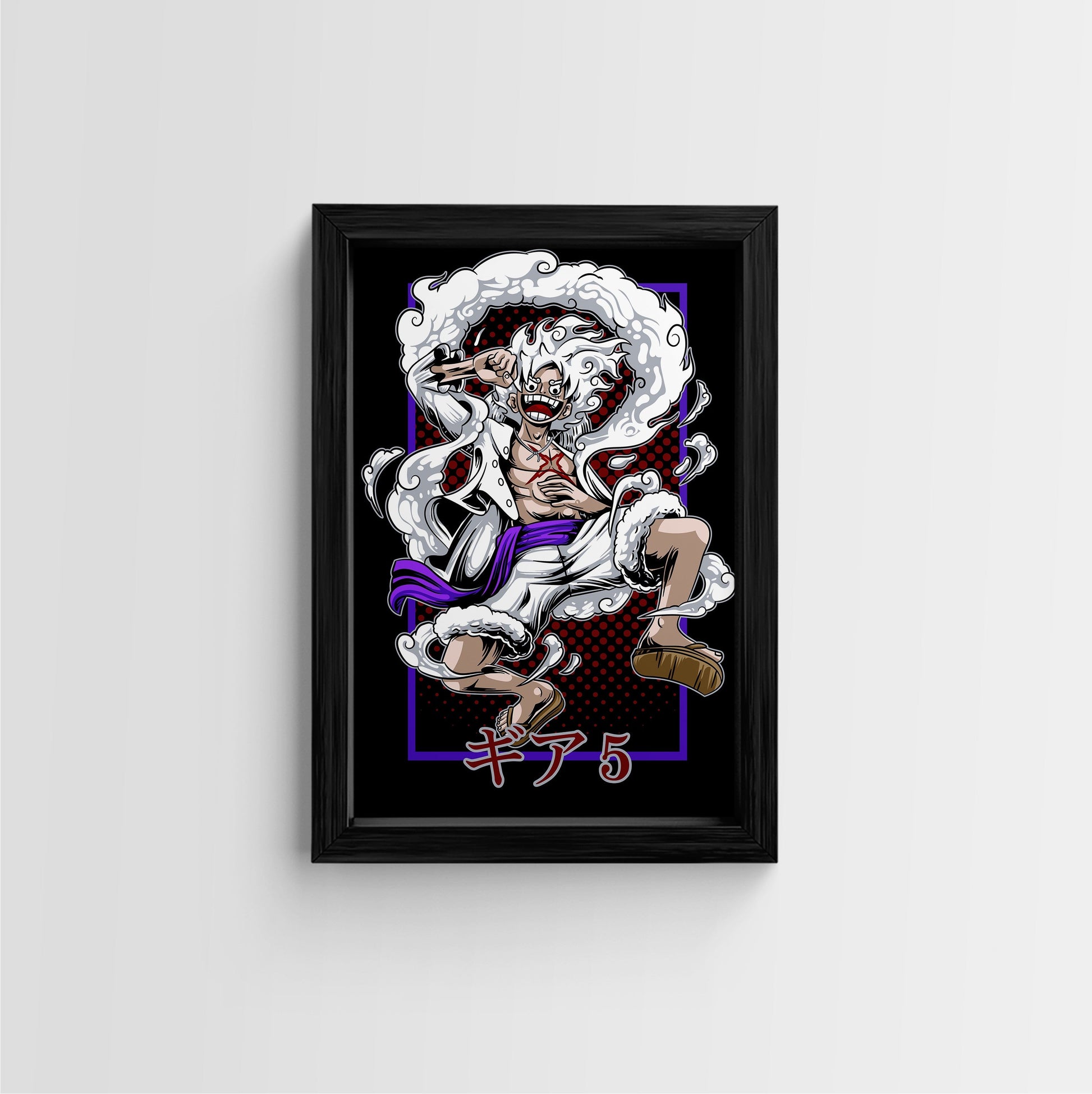 This vibrant framed art print features Luffy in his powerful Gear 5 form from the popular anime One Piece. Perfect for any One Piece fan, this canvas wall art adds a dynamic touch to your home decor. The bold colors and detailed illustration make it a captivating piece for your living room,