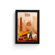 This mesmerizing canvas painting art transports you to the heart of India. Rich colors blend seamlessly, capturing the essence of our vibrant culture. Picture a man guiding his ox-cart through iconic architectural wonders, bathed in golden sunlight. This piece is more than wall art; it’s a cultural journey that adds warmth and depth to any space. Perfect as a framed art print or canvas wall art.