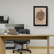This framed art print features a minimalist golden palm leaf silhouette, set against a soft beige backdrop, offering a blend of simplicity and contemporary style. Perfect for adding a touch of nature-inspired beauty to your living room or office space. Keywords include wall art, framed art print, canvas wall art, beautiful art, decorative wall art, and living room wall art.