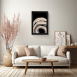 This exquisite piece of art, encased in a sleek black frame, features graceful curves and arcs painted in contrasting shades of cream and black. The minimalist design, reminiscent of serene rolling hills or gentle waves, adds a touch of sophistication and tranquility to any space. Ideal for adding a modern yet timeless appeal to living rooms or offices, this wall art seamlessly blends with various decor styles.