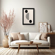 Elevate your space with our “Harmony in Contrast” framed art print, a mesmerizing blend of simplicity and complexity. This piece, perfect as canvas wall art or a sleek framed print, features an abstract geometric design that dances between two bold black circles and intricate line work, offering a visual experience that complements both modern and traditional décor. It’s more than wall art; it’s a conversation starter.