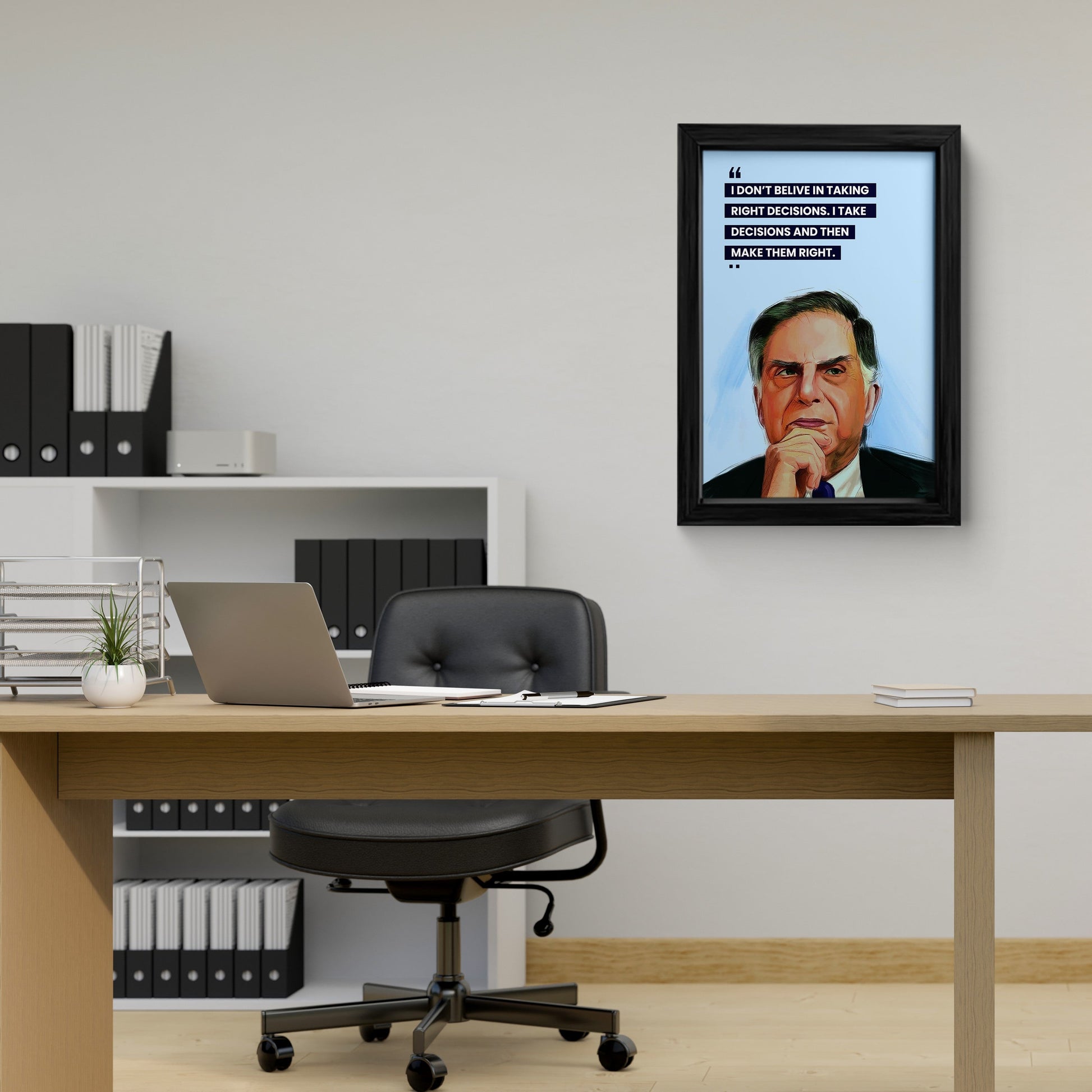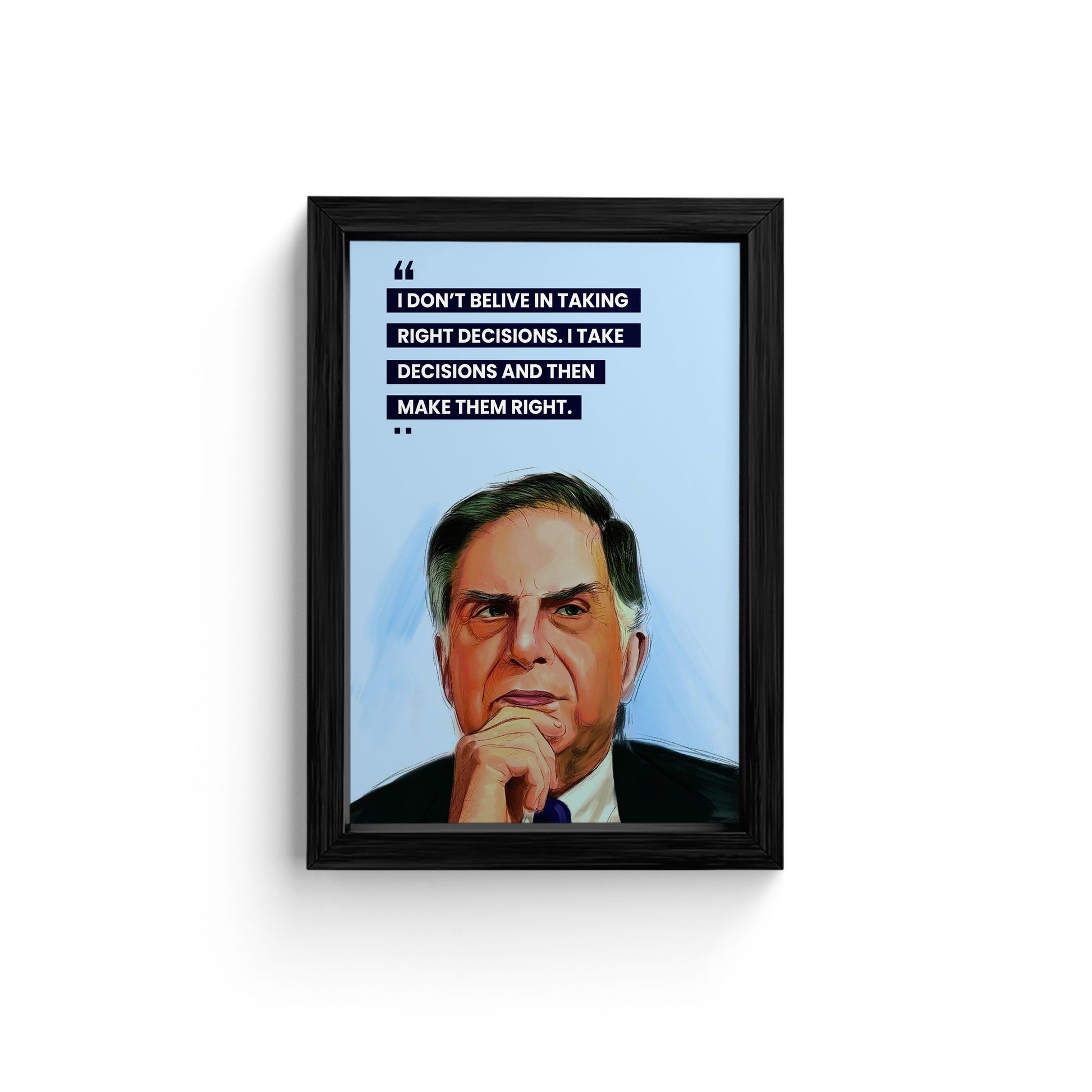 Elevate your home decor with this captivating wall art featuring Ratan Tata's motivational quote, "I don't believe in taking right decisions. I take decisions and then make them right." This framed canvas print is a perfect addition to any room, inspiring you to take bold steps and embrace challenges.