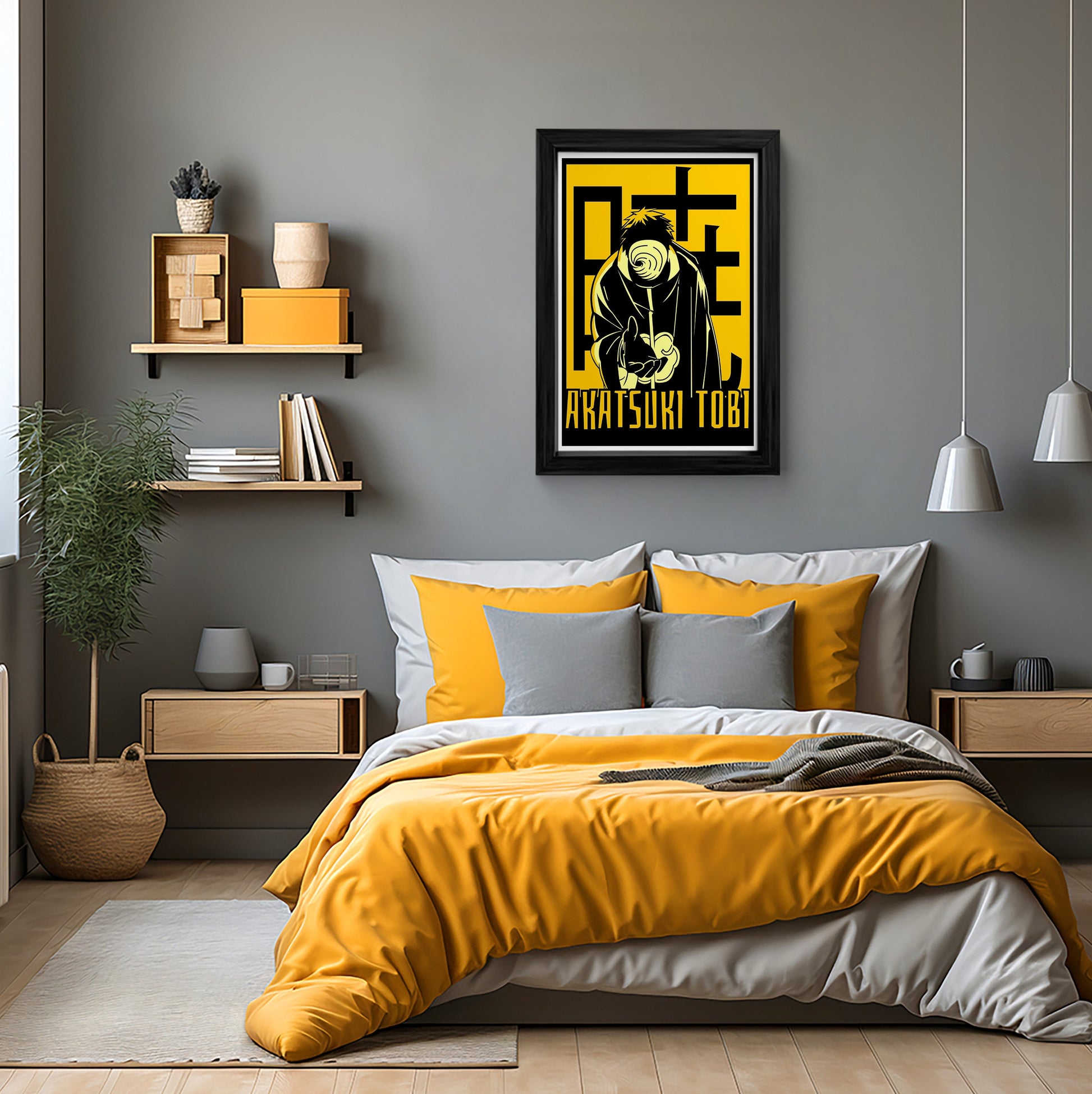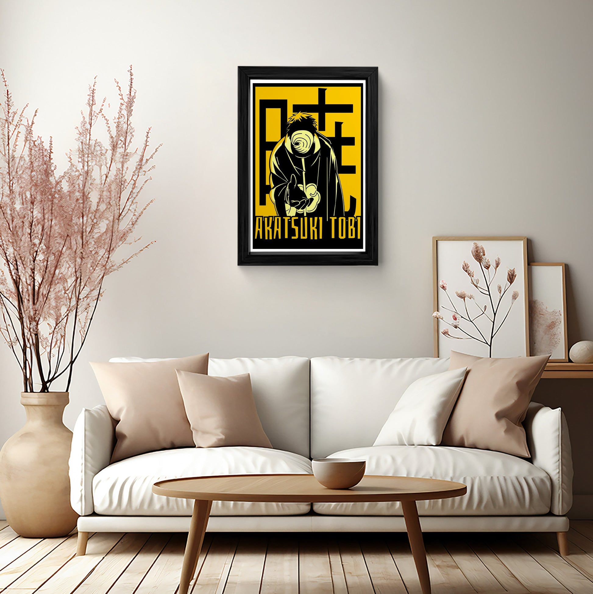 This captivating framed wall art features Obito Uchiha, also known as Tobi, in his iconic Akatsuki attire. The minimalist design and bold colors make it a striking addition to any room. Perfect for Naruto fans, this high-quality canvas print is a must-have for your home decor collection.
