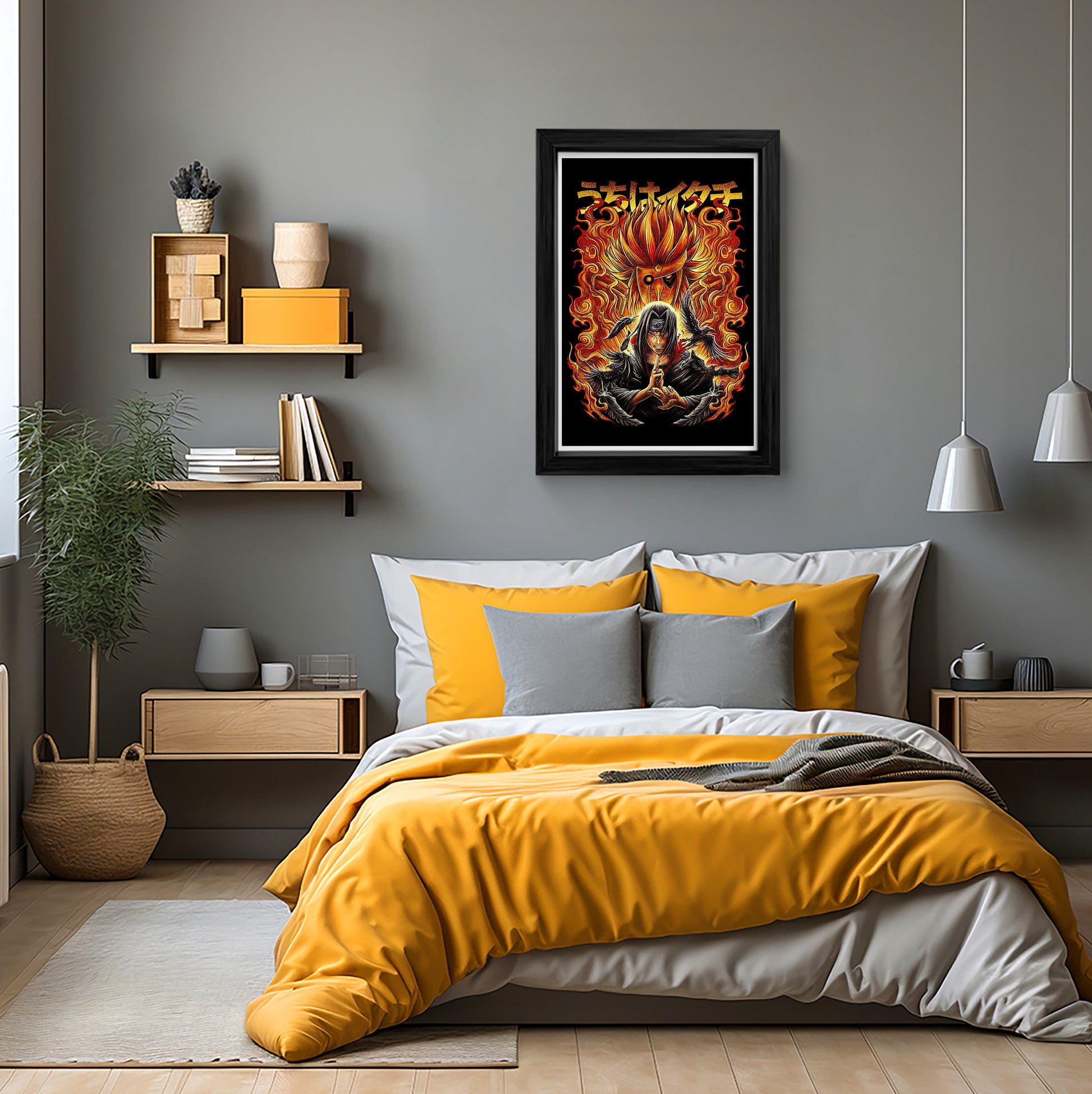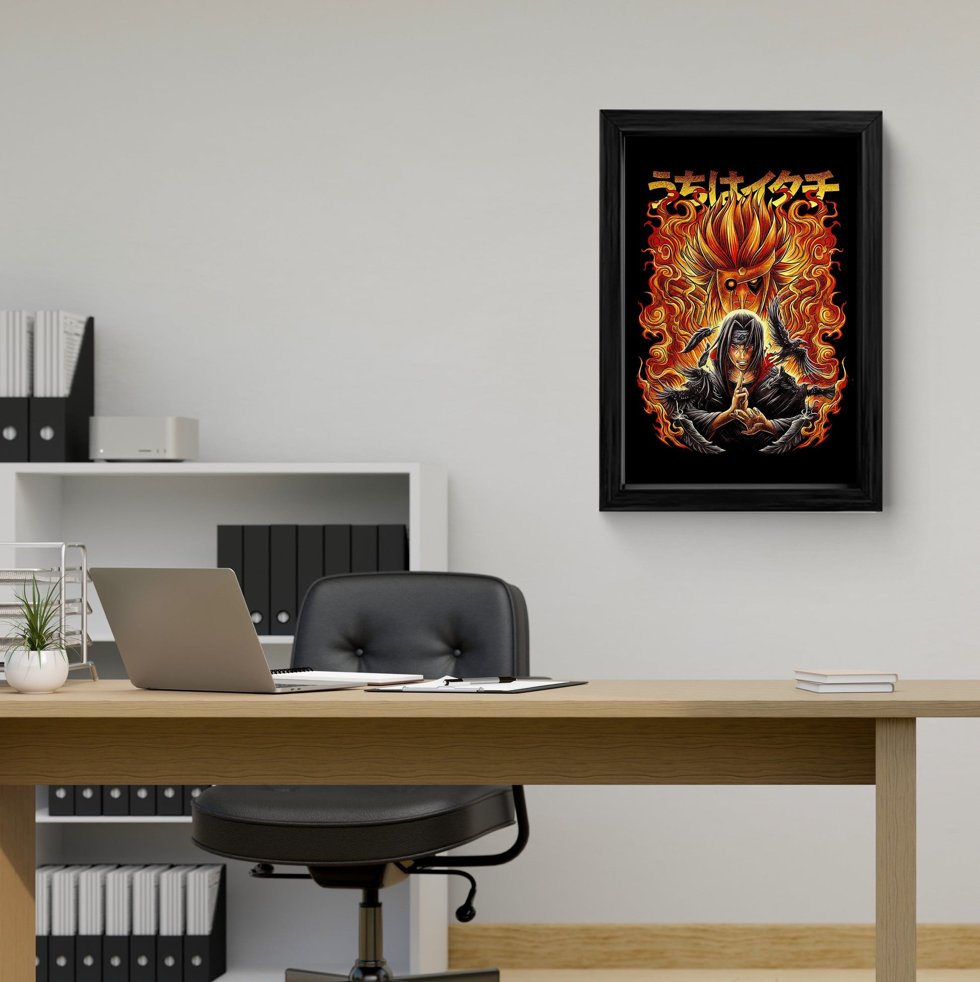 Elevate your space with this captivating Itachi Uchiha Flame Wall Art. This framed art print showcases the iconic Uchiha clan member in a fiery blaze, surrounded by crows. Perfect for Naruto fans and anime enthusiasts, this canvas wall art adds a touch of drama and intrigue to any room.