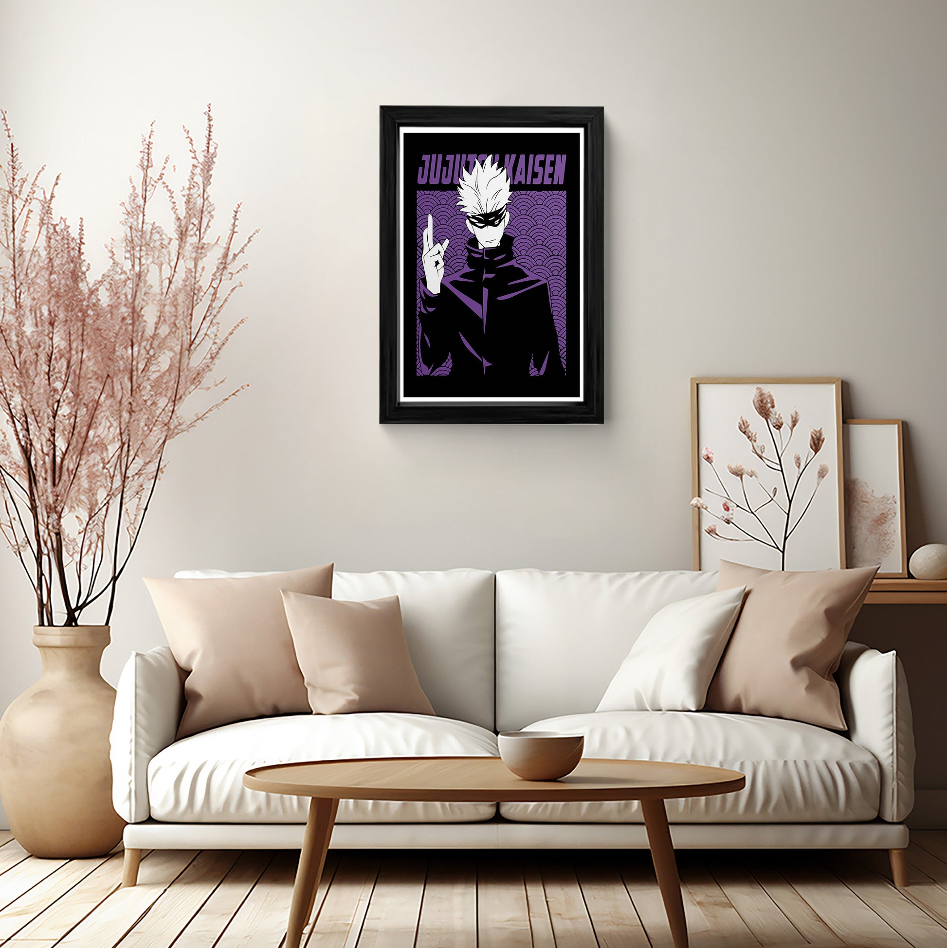 Elevate your space with this stunning Jujutsu Kaisen wall art featuring Satoru Gojo, the series' iconic character. This high-quality framed print is perfect for fans and collectors alike. Add a touch of anime magic to your home with this unique piece of canvas wall art.
