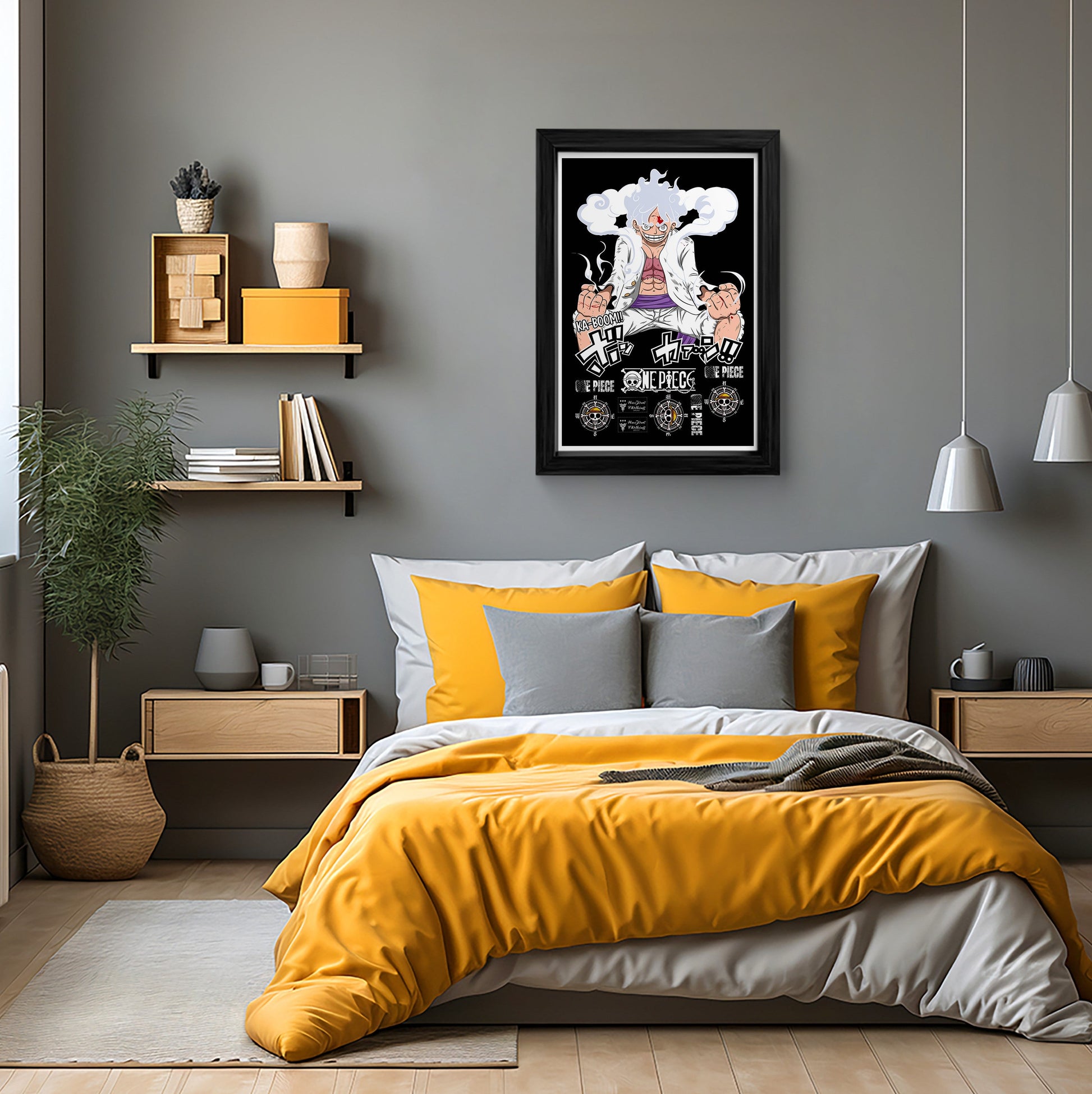 Bring the excitement of the One Piece universe into your home with this vibrant and eye-catching framed art print. Featuring the powerful and iconic character Kaido, this piece is a must-have for any fan. The high-quality canvas material and sleek black frame add a touch of sophistication to your space. This canvas wall art is perfect for bedrooms, living rooms, or any room where you want to showcase your love for One Piece.