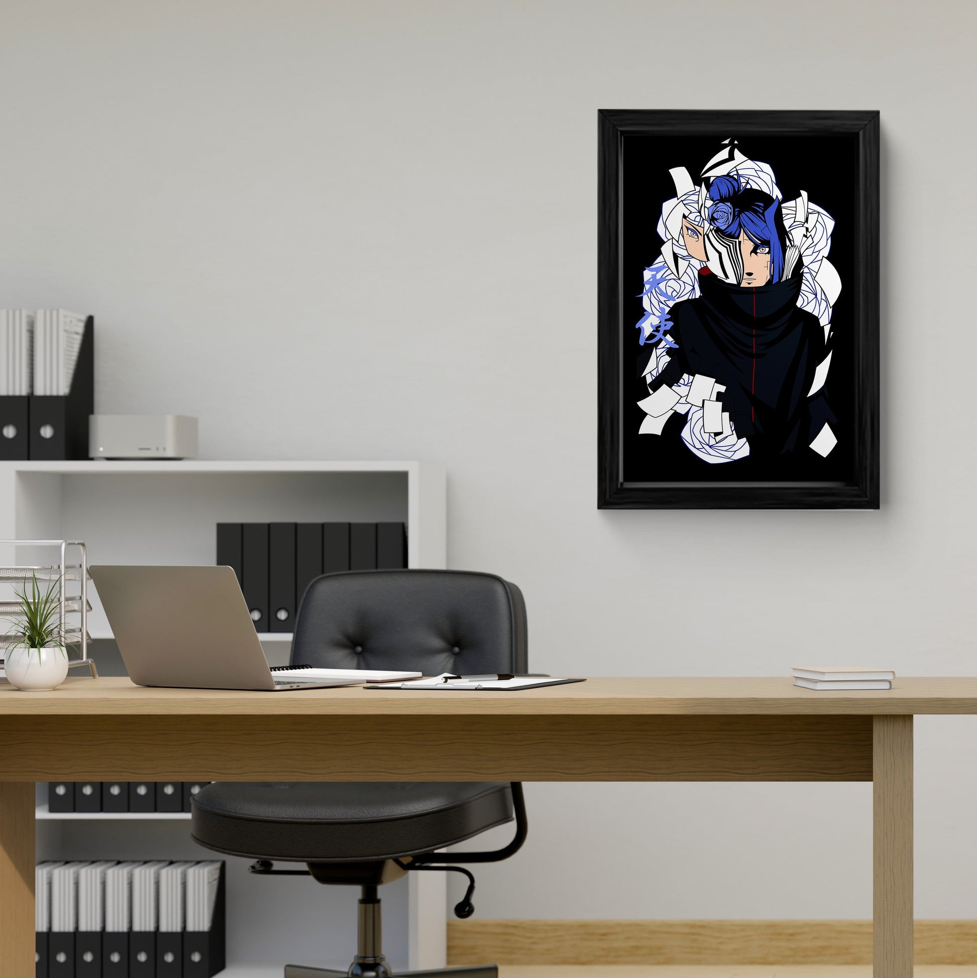 Elevate your space with this stunning framed art print featuring Konan, the enigmatic paper flower ninja from Naruto. The intricate details and vibrant colors capture the essence of this beloved character. This piece is a must-have for any Naruto fan and makes a perfect addition to your home or office.