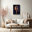 Elevate your wall decor with our captivating La Dance Canvas Print. This minimalist masterpiece features bold, organic shapes in deep blue and warm tan, outlined by sleek black lines. Framed in timeless black, it adds a touch of modern elegance to any space. Discover the rhythm of movement in this unique piece.