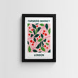 Dive into the vibrant atmosphere of the Farmers Market in London with our exquisite art poster. The background, adorned with pink hues and overlaid green leaves, sets the stage for a delightful scene. Fresh cherries and slices of bread take center stage, evoking the wholesome energy of a bustling market. Whether in kitchens, dining areas, or living spaces, this poster brings warmth and vibrancy to your home.