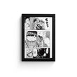 This striking piece captures a pivotal moment in a manga story, where characters are engulfed in intense emotion and action. The black and white artwork, rich with expressive lines and detailed illustrations, brings to life a scene of courage and anticipation. It’s a perfect addition for collectors of unique wall art or enthusiasts of storytelling through visual art.