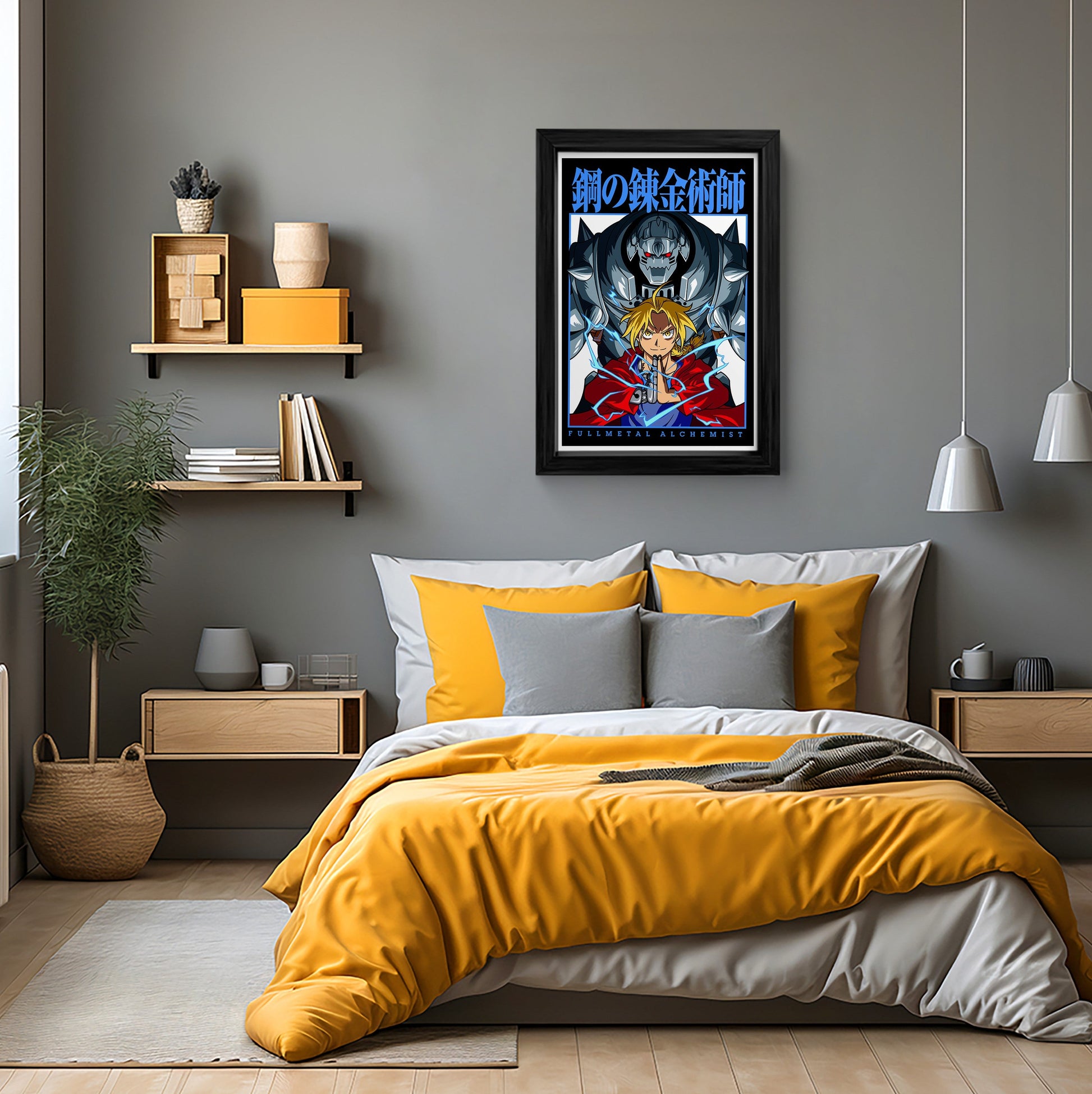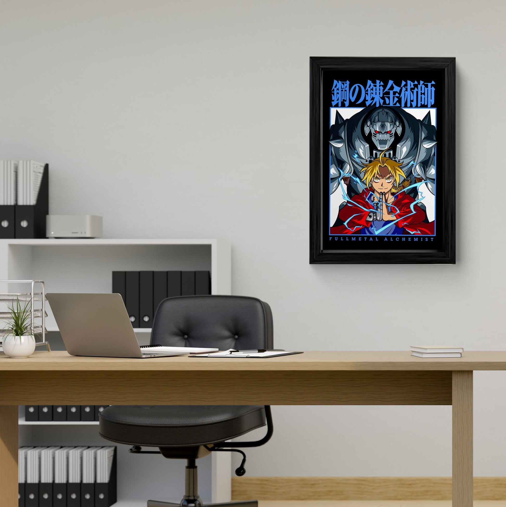 Elevate your space with this stunning Fullmetal Alchemist framed art print. Featuring Edward Elric and Alphonse Elric, this iconic anime duo is captured in a dynamic pose. Perfect for any fan, this canvas wall art is a must-have addition to your home or office.