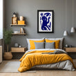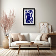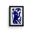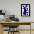 This framed art print features a striking navy blue depiction of a playful creature amidst flora, perfect for adding a touch of whimsy to any living space. Its bold color and simple design make it an ideal choice for those seeking decorative wall art that blends modern style with a hint of nature’s charm.