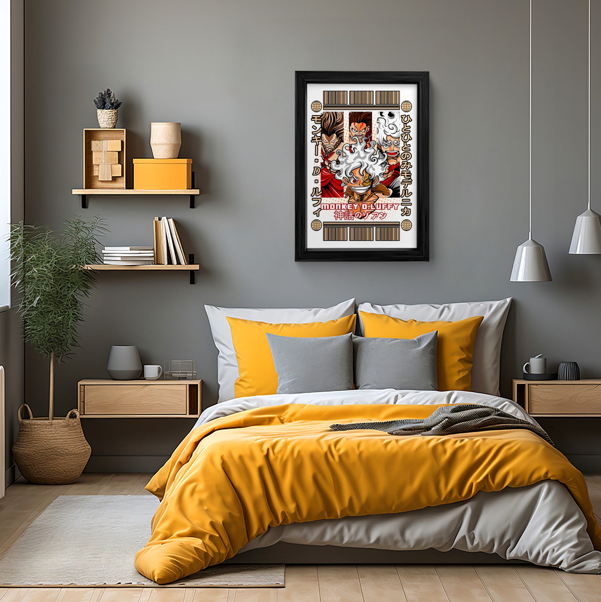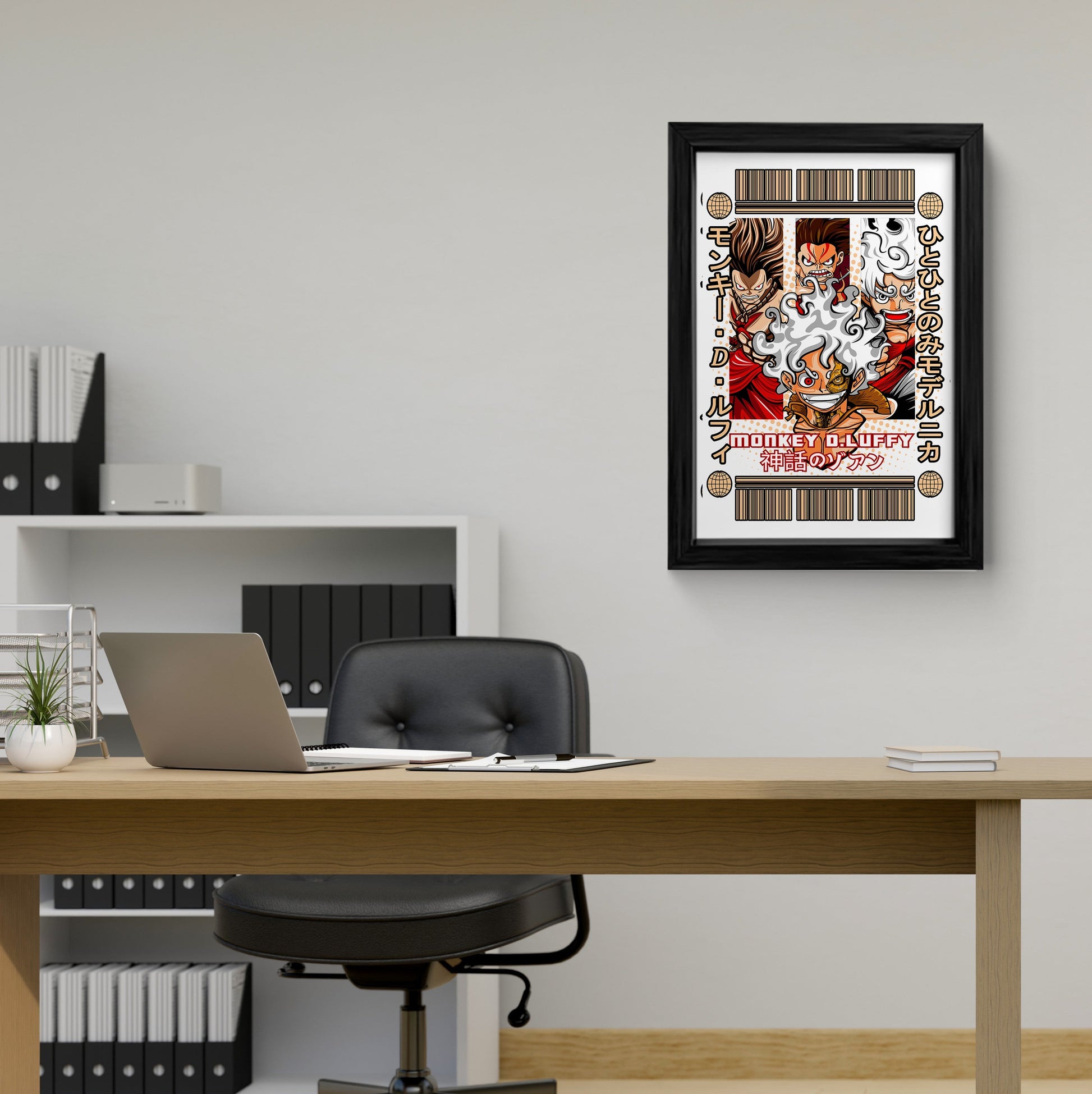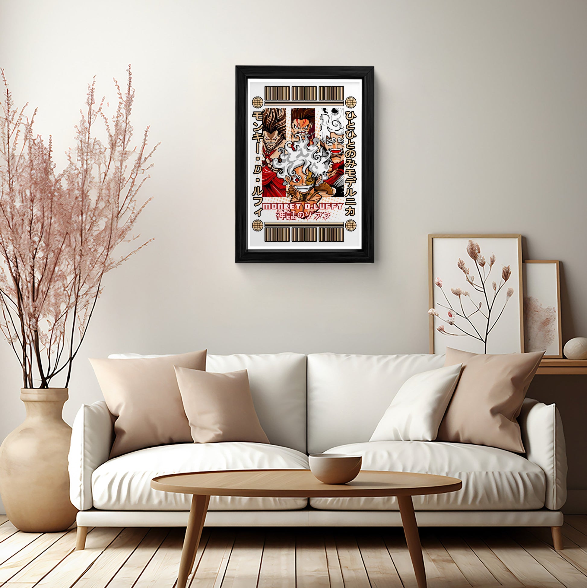This stunning framed art print showcases the iconic Monkey D. Luffy from One Piece, transformed into his legendary Zoan form. A must-have for any anime fan, this high-quality canvas wall art is perfect for adding a touch of excitement and adventure to your home decor. The vibrant colors and intricate details bring the character to life, making it a captivating centerpiece for any room.