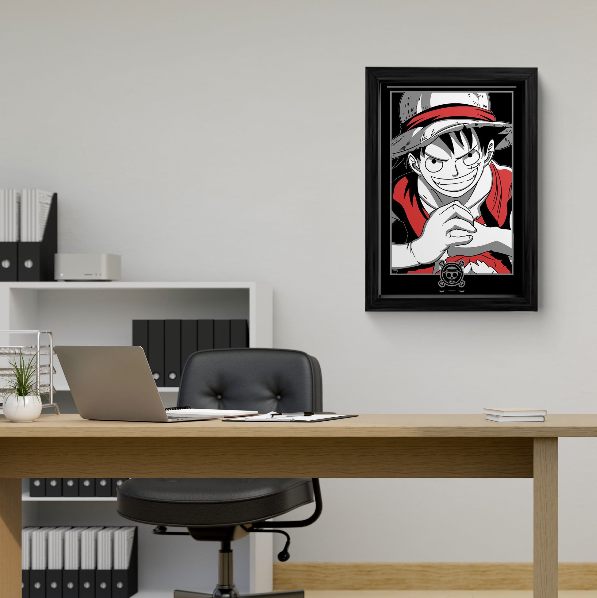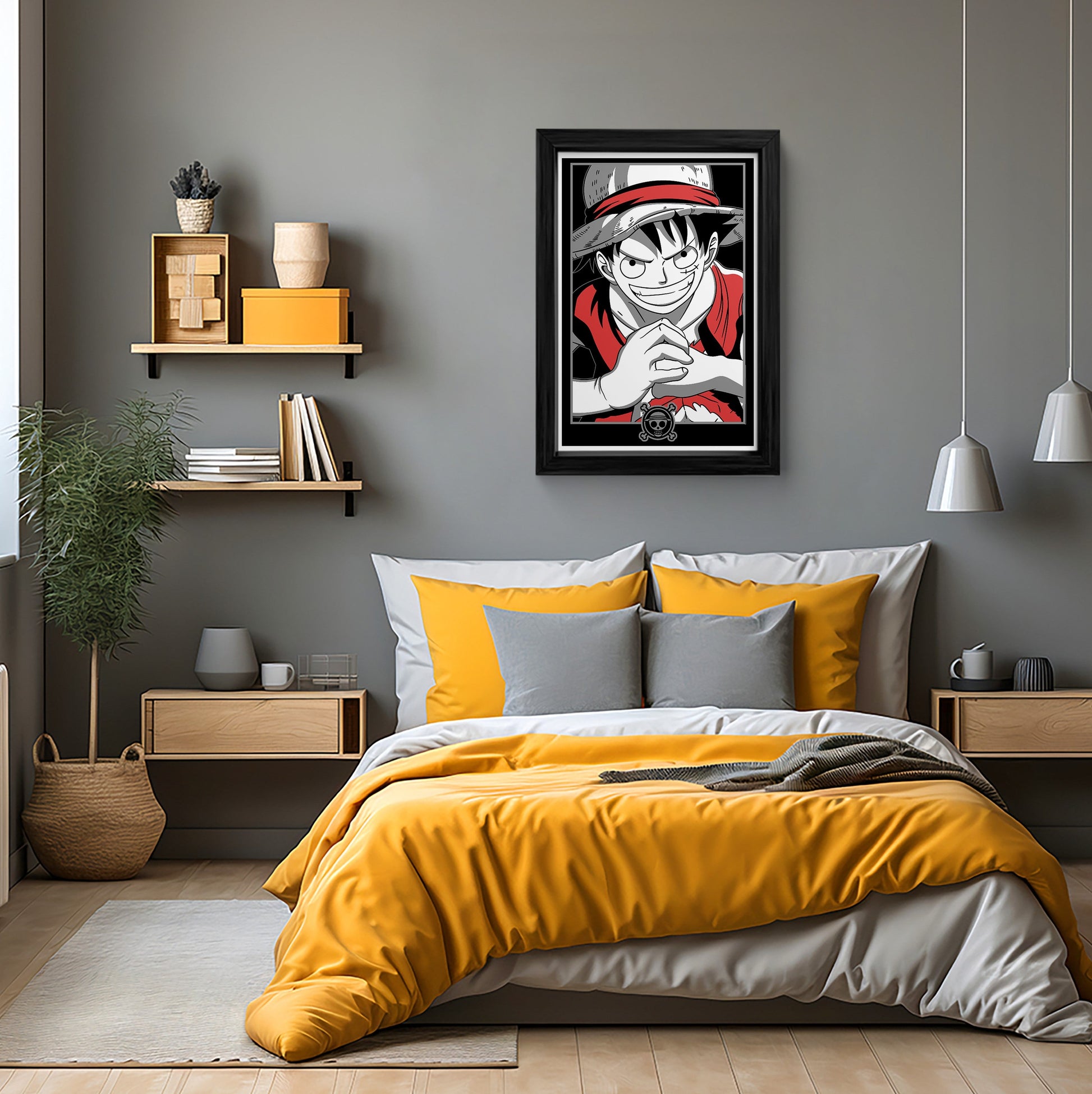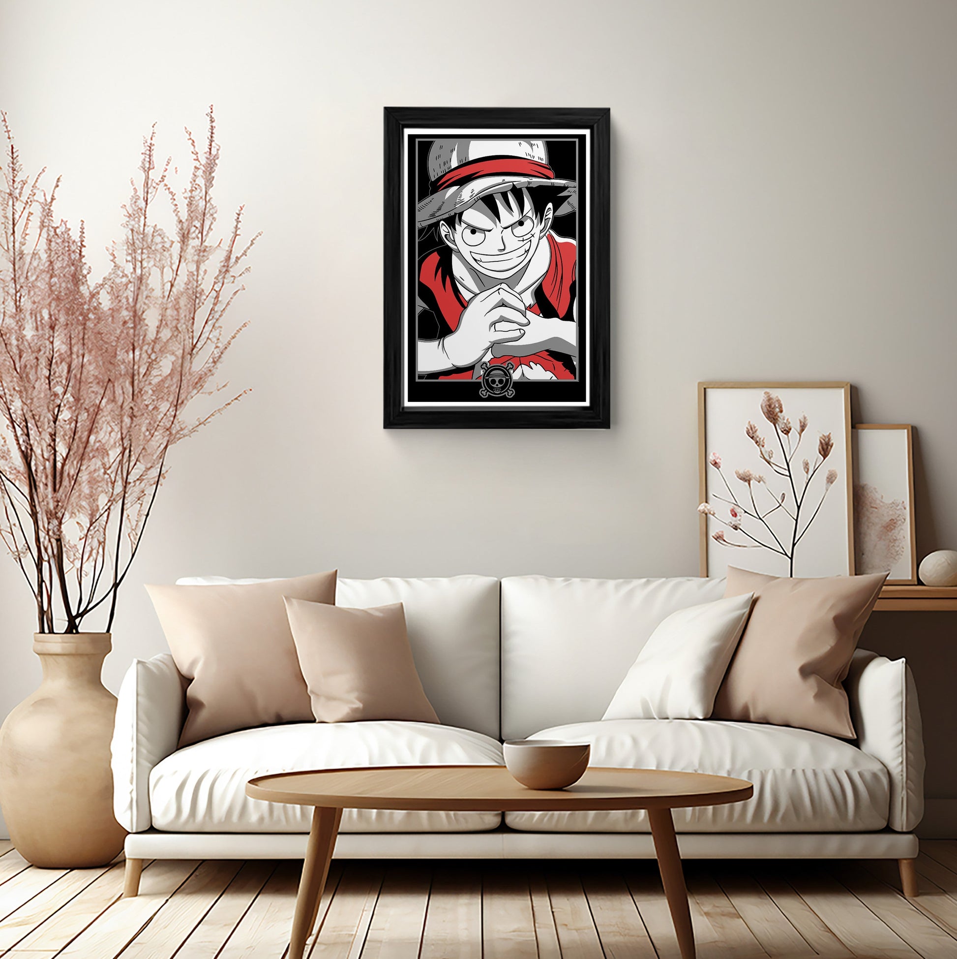 This stylish black and white framed art print features Monkey D. Luffy, the iconic protagonist from the popular anime and manga series, One Piece. Perfect for any One Piece fan, this high-quality canvas wall art will add a touch of adventure and excitement to your home. The minimalist design and bold lines make it a versatile piece that complements various interior styles. Display it in your living room, bedroom, or office to showcase your love for this beloved series.