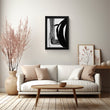 This framed art print features a striking abstract design, perfect for adding a touch of sophistication to any living space. The contrasting black and white tones create a modern aesthetic that complements contemporary decor. Ideal for those seeking a stylish addition to their home, this piece serves as an eye-catching focal point in any room.
