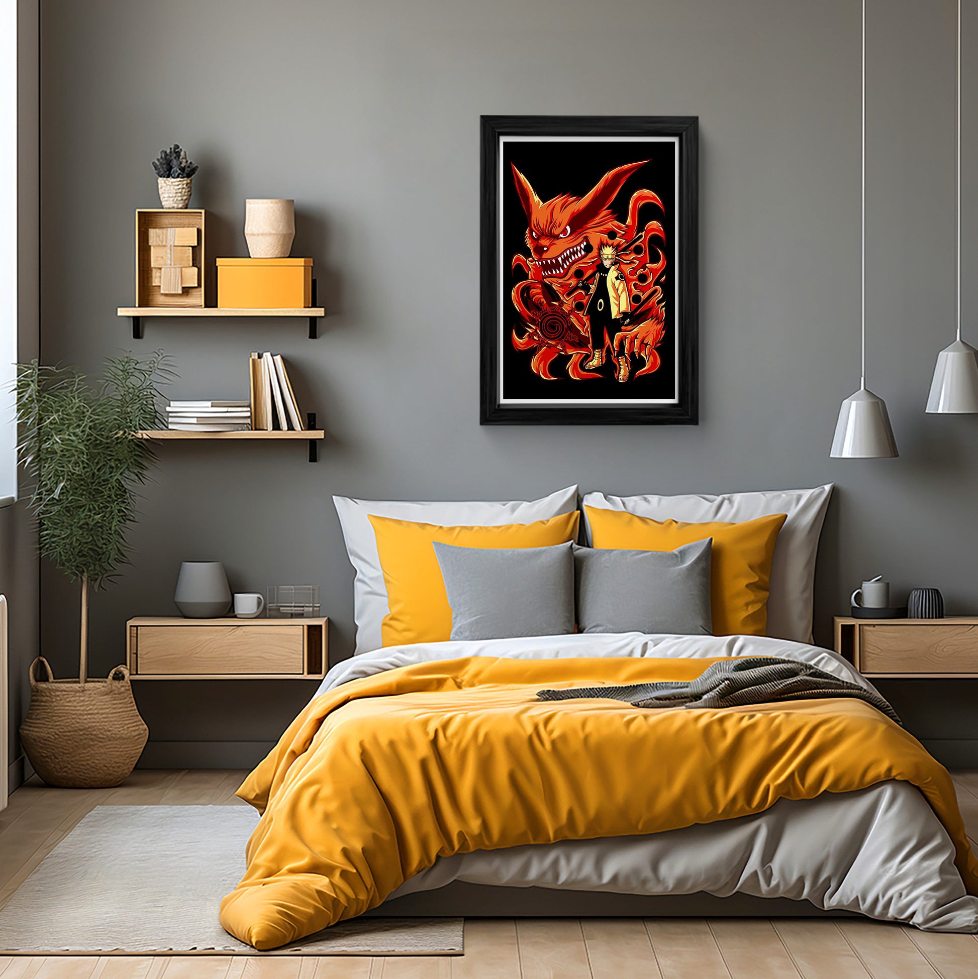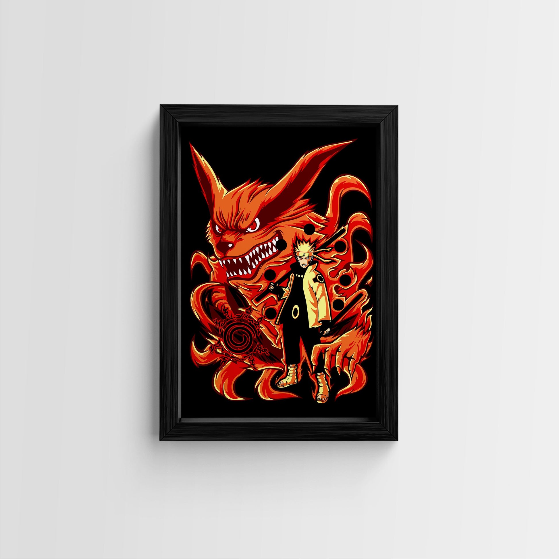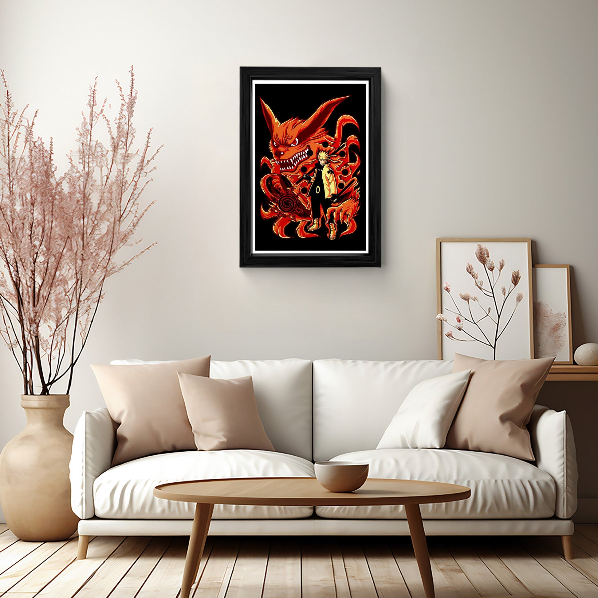 This captivating framed art print showcases the iconic duo from Naruto, Naruto and his powerful Nine-Tailed Fox, Kurama. The vibrant orange hues and dynamic poses capture the intensity and bond between the two. Perfect for Naruto fans, this piece makes a bold statement as a wall art or canvas painting.