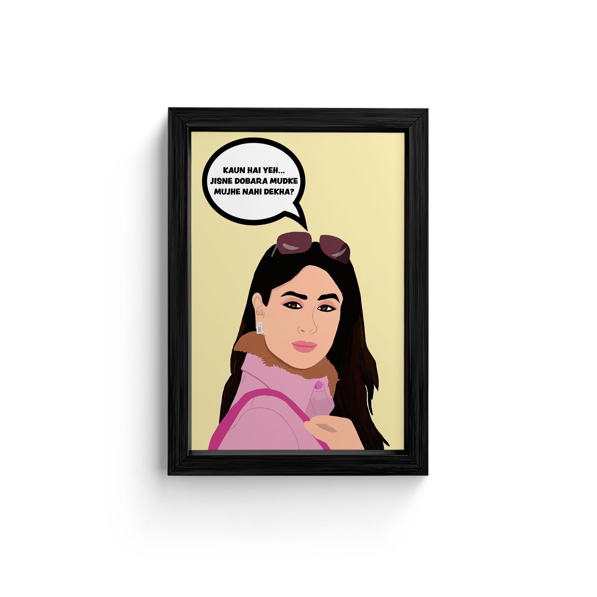 This stylish framed art print features Kareena Kapoor Khan in a sassy pose, accompanied by a witty quote from the popular Bollywood movie "Ae Dil Hai Mushkil." Perfect for adding a touch of Bollywood glamor to your home decor. Hang it in your living room, bedroom, or office for a unique and eye-catching piece of wall art.