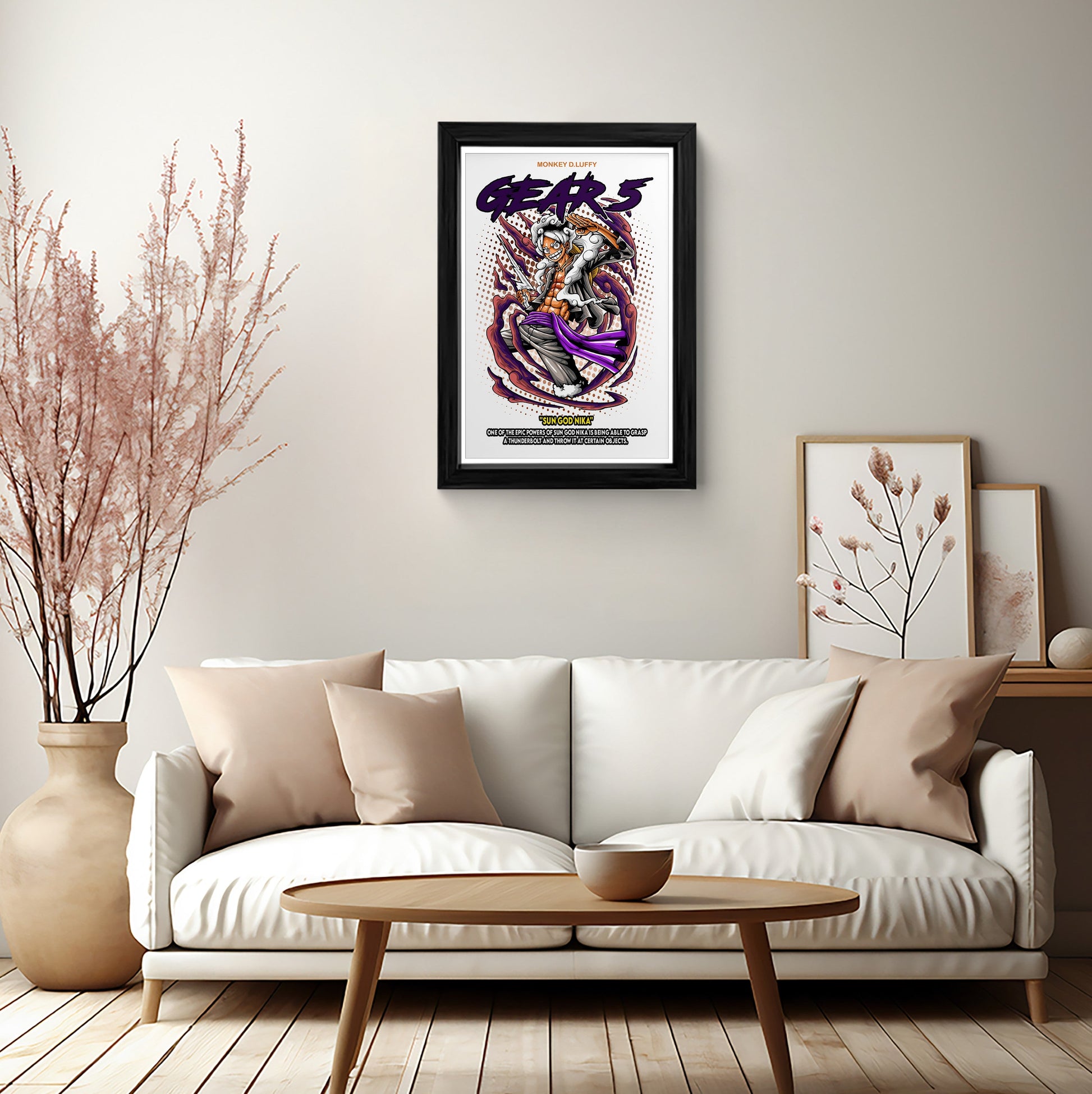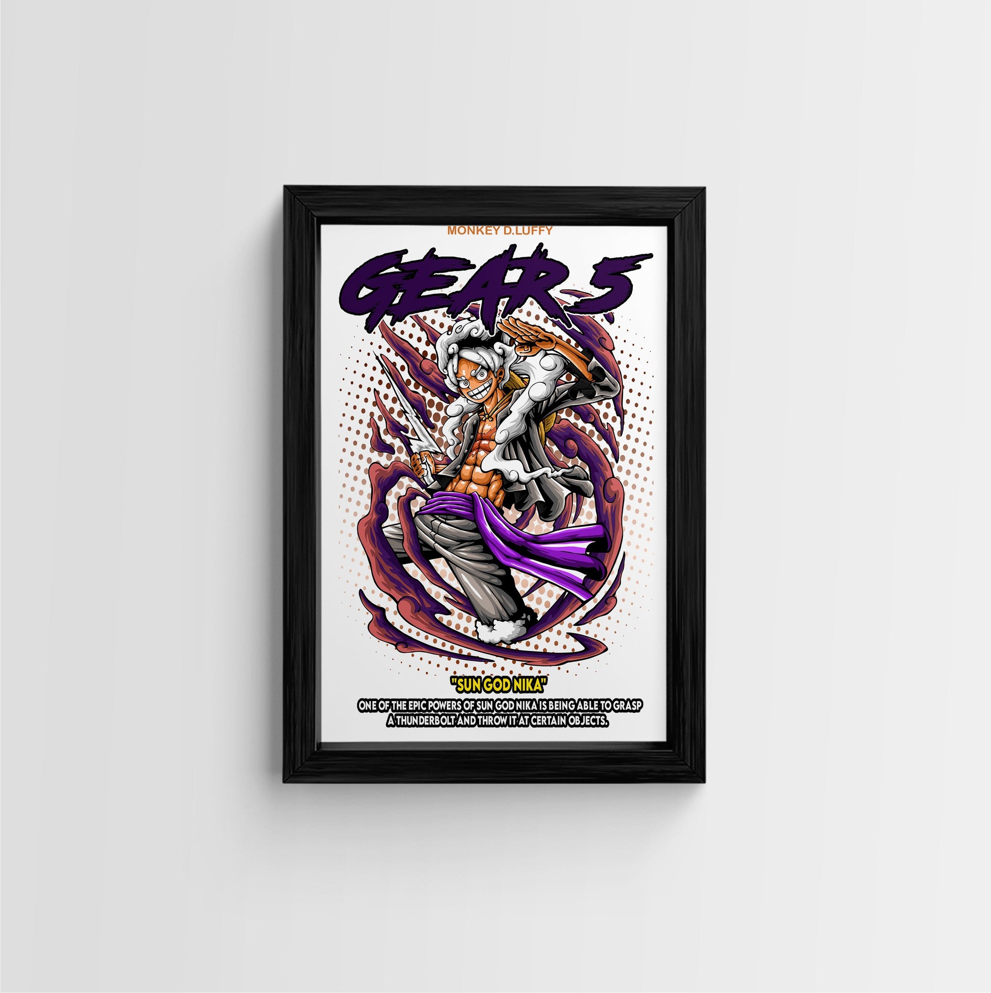 Elevate your space with this stunning One Piece Gear 5 - Sun God Nika wall art. This framed art print features Luffy in his powerful Gear 5 form, showcasing his incredible abilities. Perfect for fans and collectors alike, this canvas wall art adds a touch of adventure and excitement to any room.