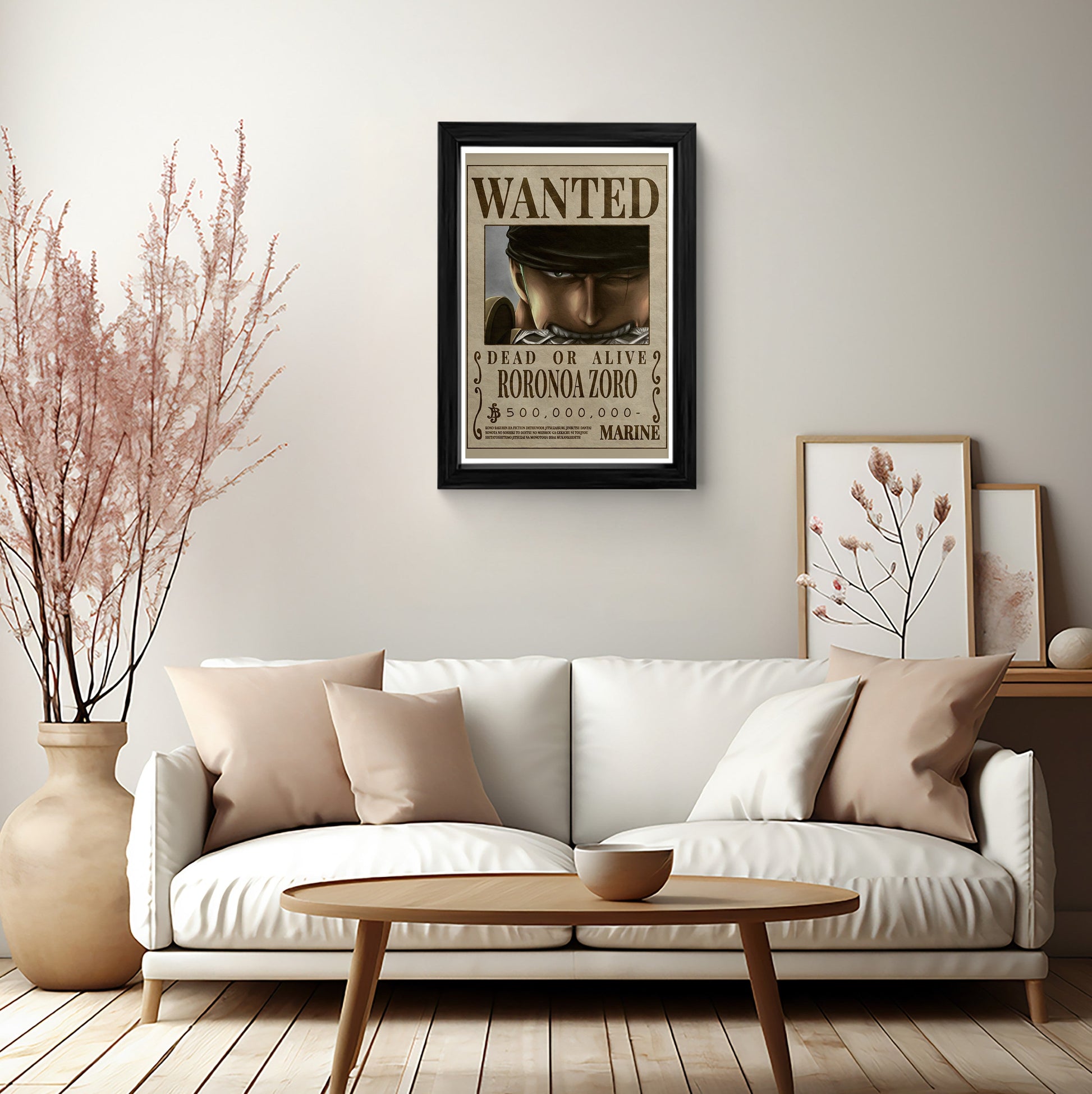 Elevate your space with this stunning One Piece-themed framed wall art. Featuring the iconic Roronoa Zoro wanted poster, this piece is a must-have for any anime fan. The high-quality canvas print and sleek frame add a touch of sophistication to your home or office. Perfect for decorating your living room, bedroom, or study.