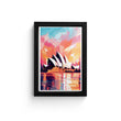 This canvas painting art, a vibrant portrayal of the iconic Sydney Opera House, is a perfect piece for those looking to add a touch of modern aesthetic to their space. The mix of warm and cool tones brings this wall art to life, making it a focal point in any room. It’s available as both framed art print and canvas wall art, ensuring it fits seamlessly with your existing decor.