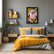 This canvas painting art, inspired by the iconic pop art style, brings a touch of modern sophistication to any space. The intense gaze and vibrant colors make it a striking choice for those looking to add character and style to their interiors. Perfect as wall art or a framed art print, this piece is a blend of nostalgia and contemporary aesthetics.