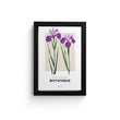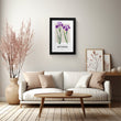 Bring a touch of elegance and botanical beauty to your home with this striking framed wall art print. The artwork features two vibrant purple flowers with green leaves set against a crisp white background, all encased in a stylish black frame. This captivating floral print is a wonderful conversation starter and a perfect way to add a touch of personality to any room.