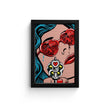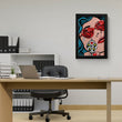 This modern piece of wall art captures a surreal moment, where emotions and reflections intertwine. The canvas painting art features a close-up of a face with red sunglasses reflecting intricate skull designs, paired with a unique robotic element, making it a striking addition to any space seeking a contemporary touch. Perfect as framed art print or canvas wall art to add depth and character to your room.