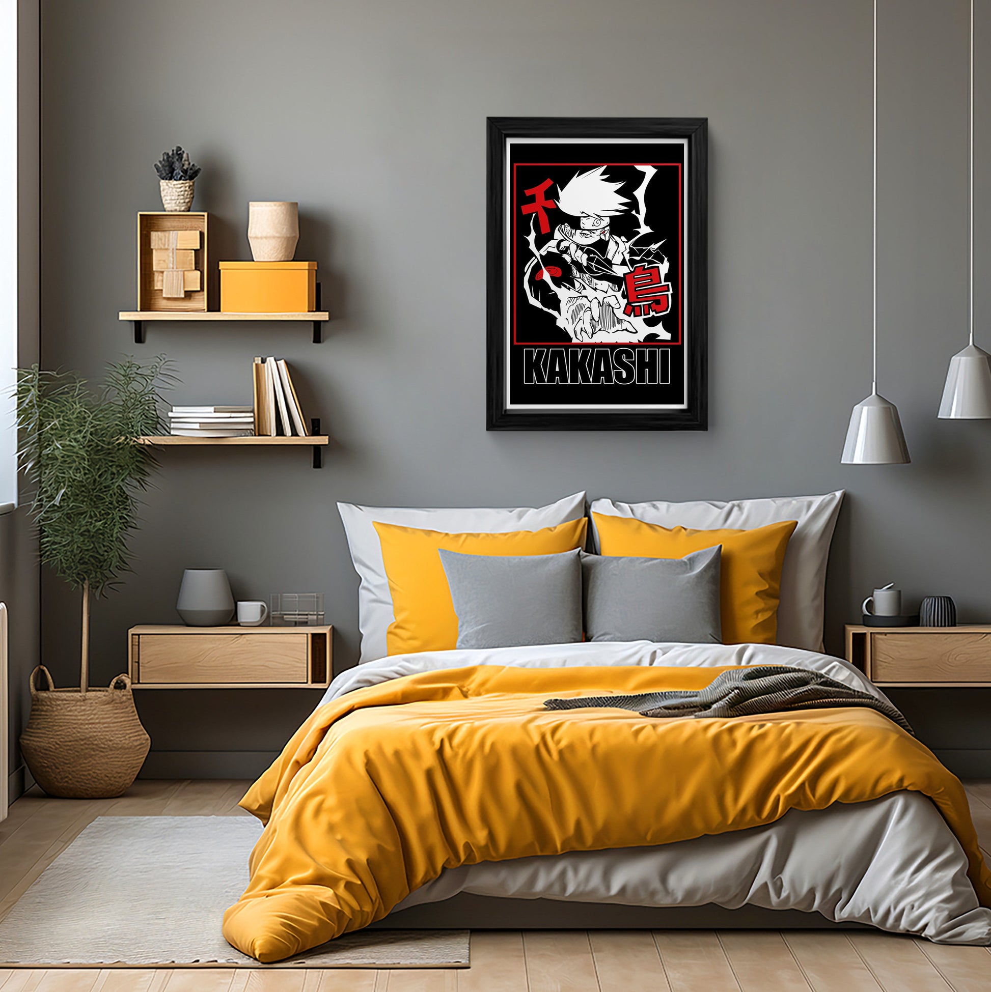 Elevate your space with this striking framed art print, featuring the iconic anime character Kakashi in a bold black, white, and red color scheme. Perfect for fans of the genre, this canvas wall art captures Kakashi’s intense energy and is sure to be a conversation starter. The artwork is printed on high-quality canvas and framed in a sleek black frame that complements any decor. Whether you’re looking to add a touch of manga flair to your living room or creating an inspiring workspace, this canvas painting is an excellent choice for wall art that combines modern style with beloved anime culture.