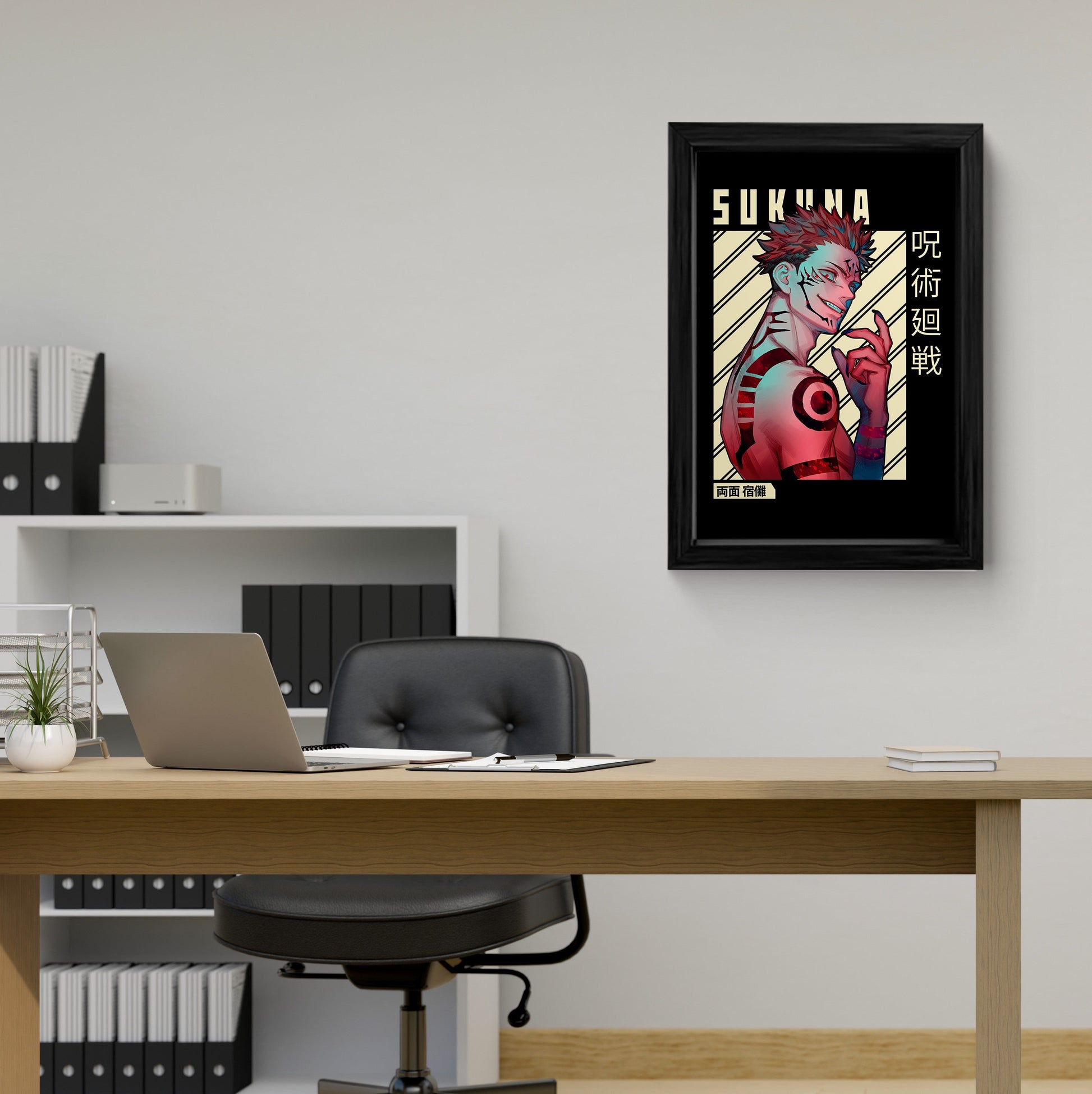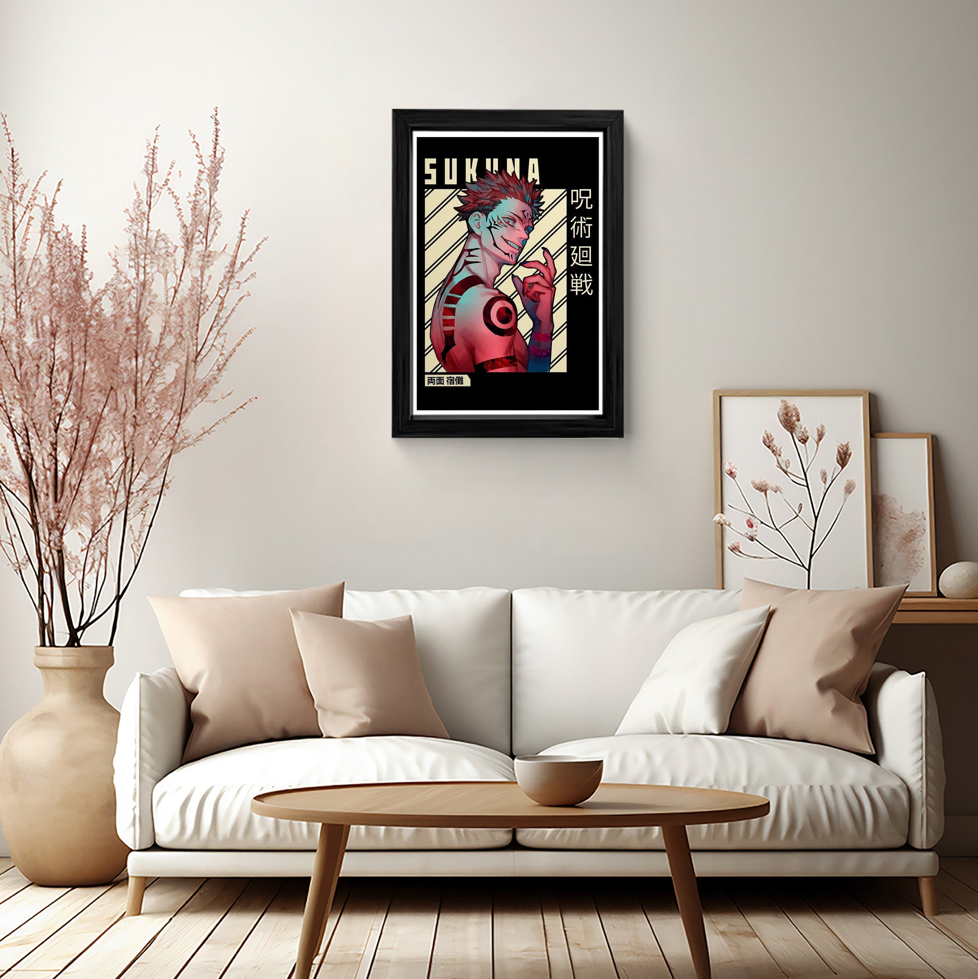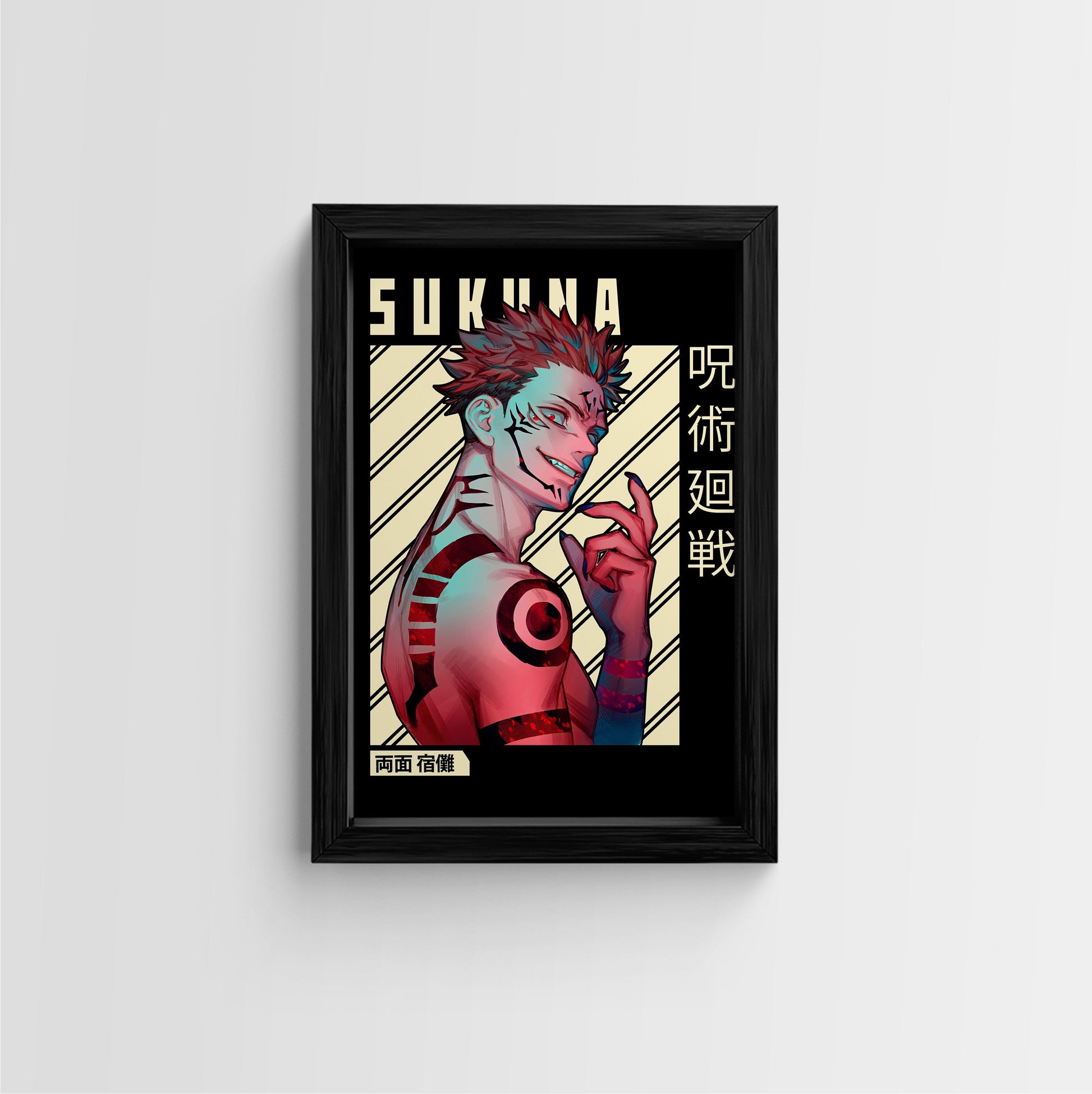 Elevate your anime collection with this stunning Ryomen Sukuna framed art print from Jujutsu Kaisen. Featuring a vibrant, detailed illustration of the King of Curses, this piece is a must-have for any fan. Perfect for wall decor, this framed art print adds a touch of style and character to any room.