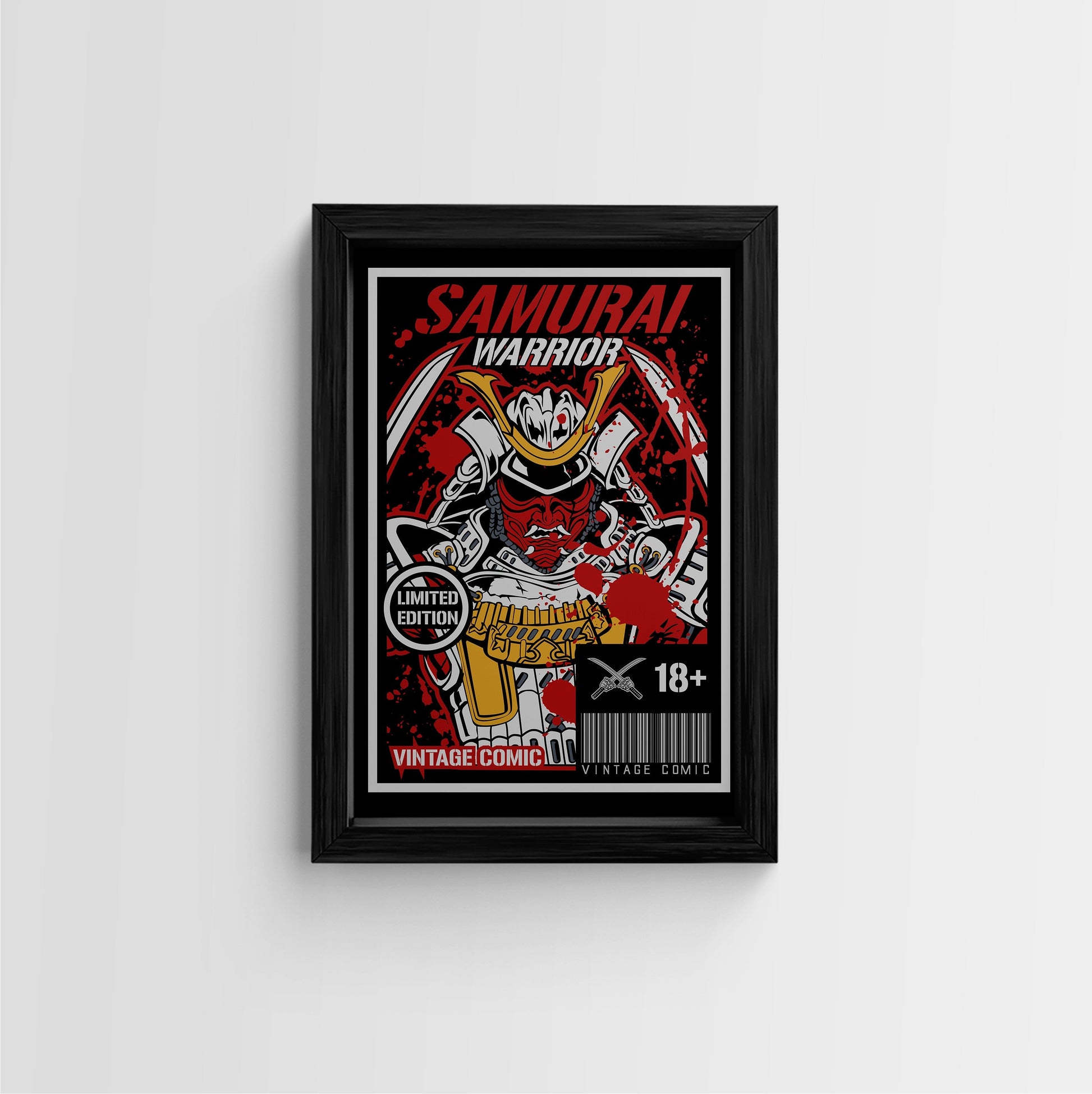 Elevate your space with this striking Samurai Warrior Vintage Comic Wall Art. Featuring a bold illustration of a samurai warrior, this framed art print is a perfect addition to any room. Crafted with high-quality canvas and a sleek black frame, this piece is a must-have for vintage comic enthusiasts and art collectors alike.